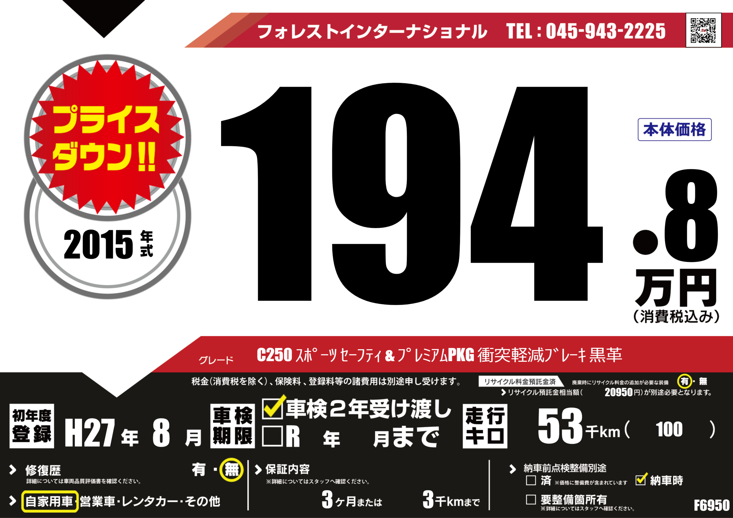 | 走行キロ | 5.3万km | 初年度登録 | H27年8月 |