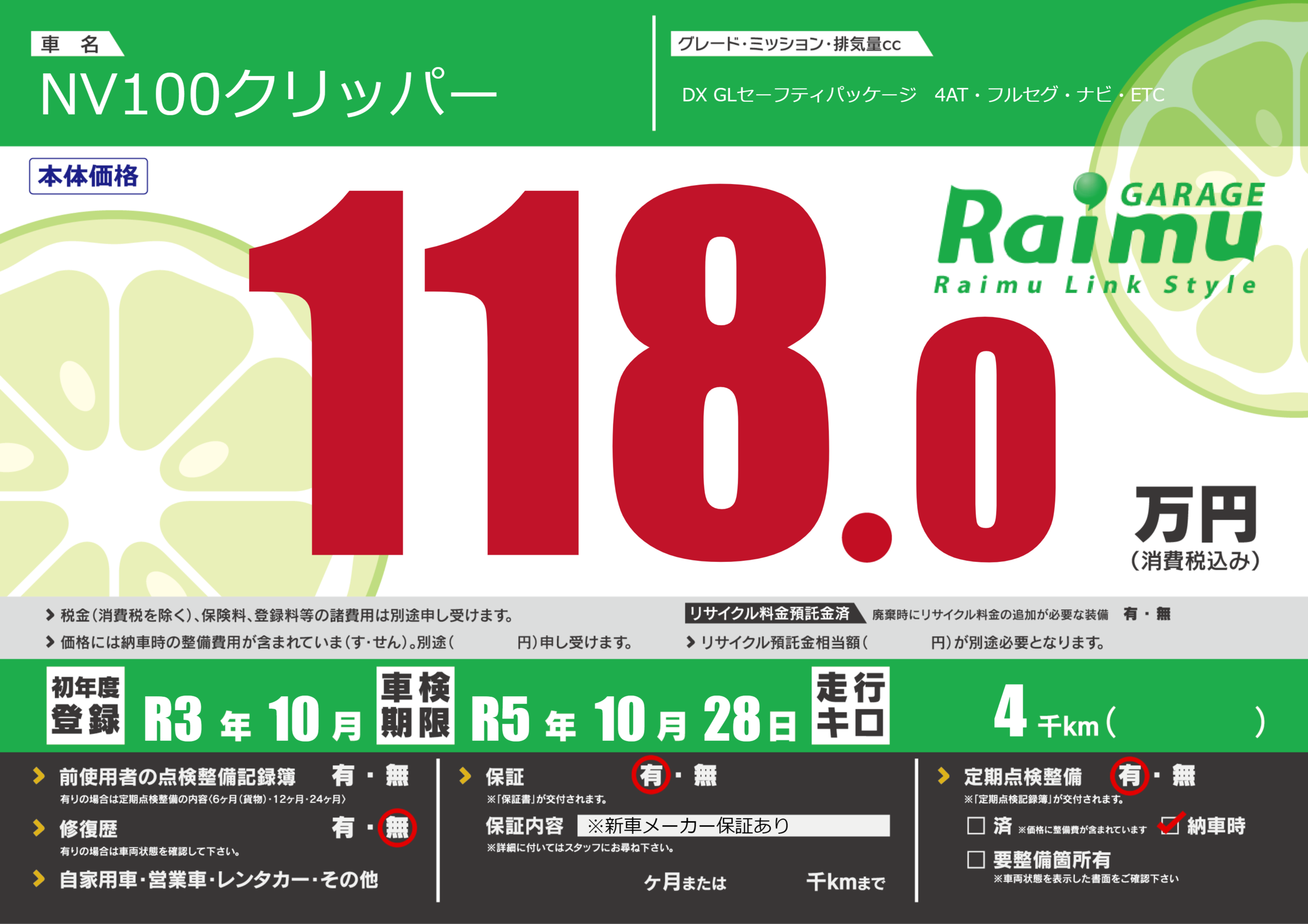 | 車名 | NV100クリッパー | グレード ミッション 排気量 |