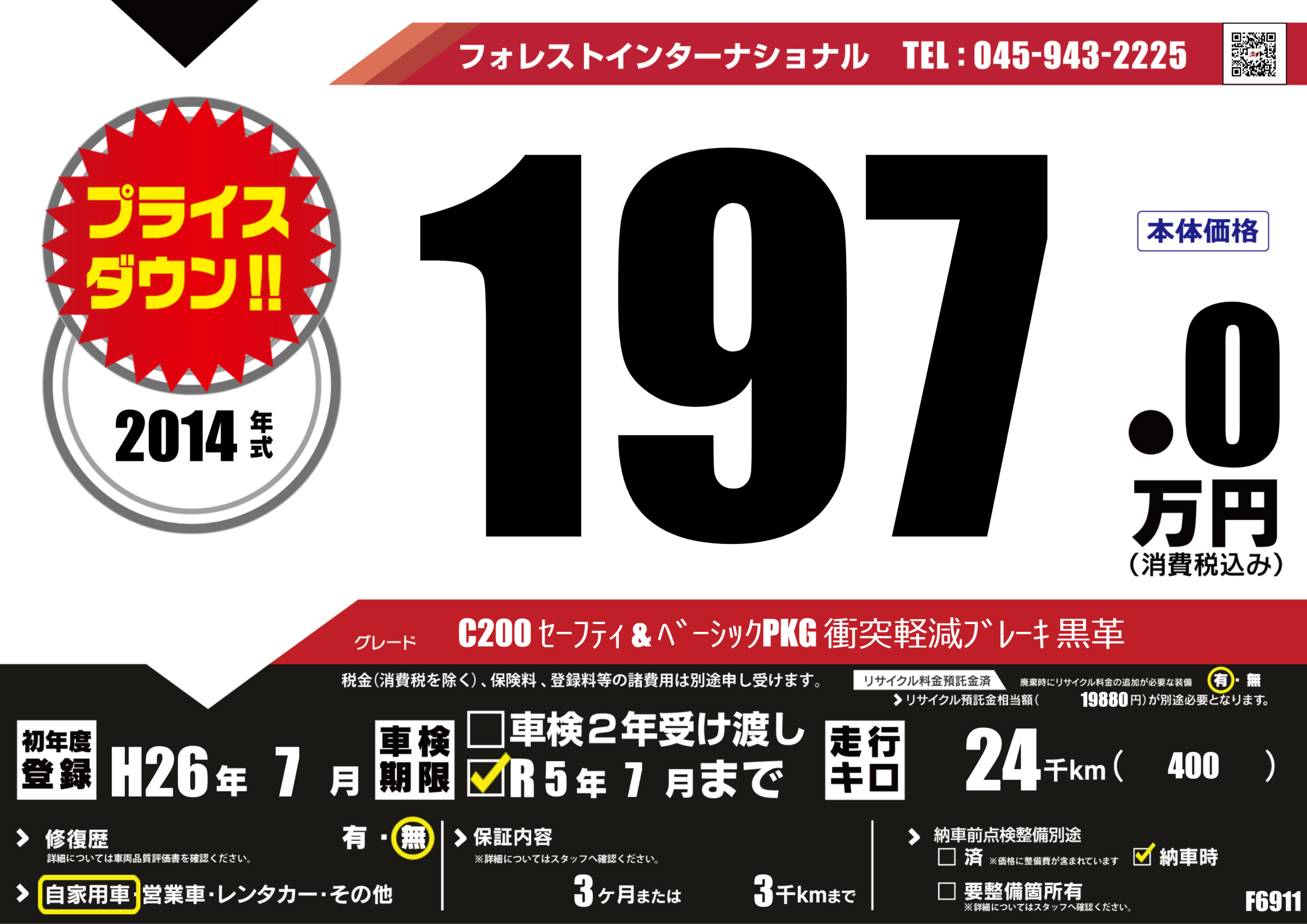 C200 セーフティ & ベーシックPKG 衝突軽減ブレーキ 黒革 |