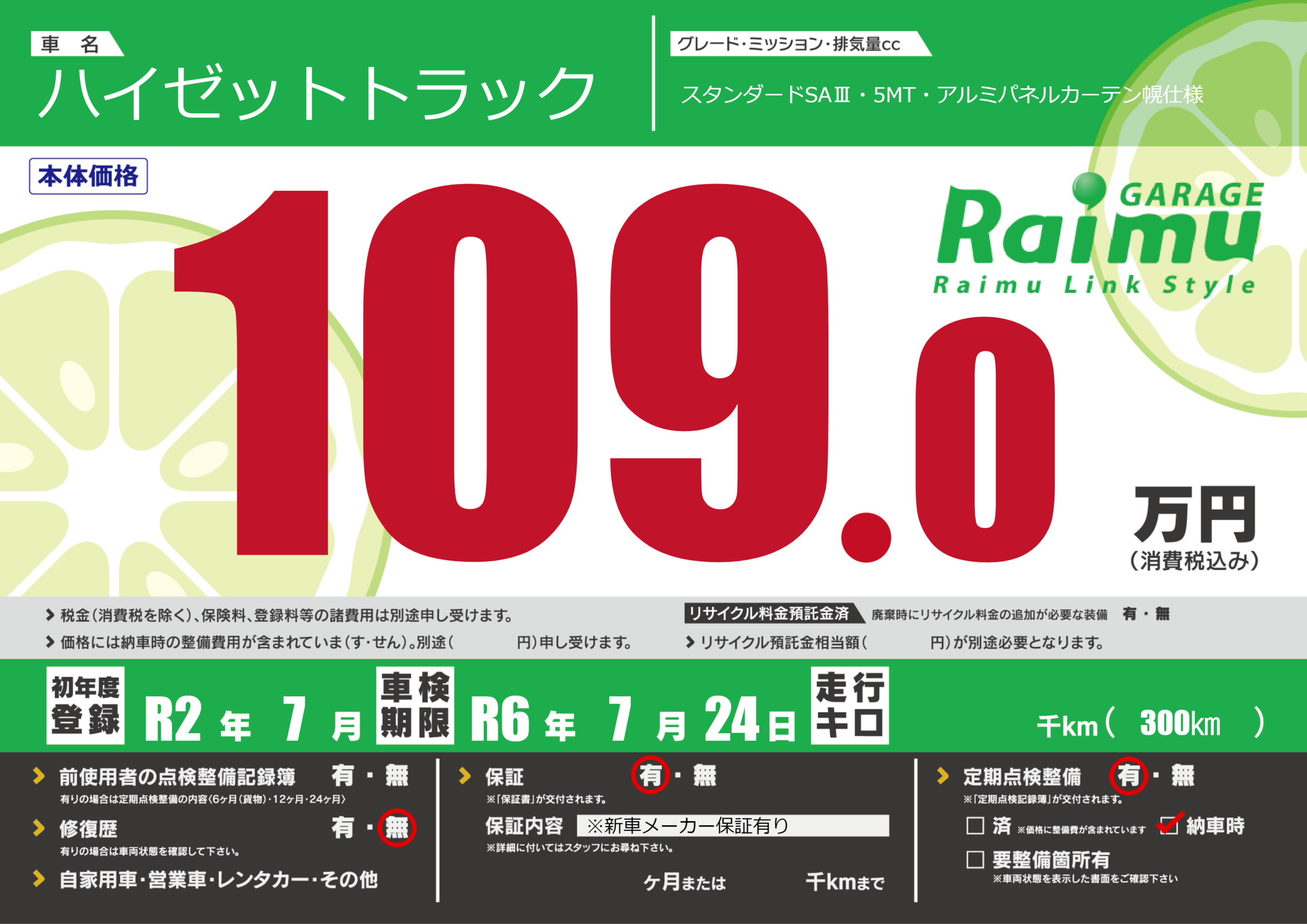 なし | 車検制限 | R6年7月24月 |