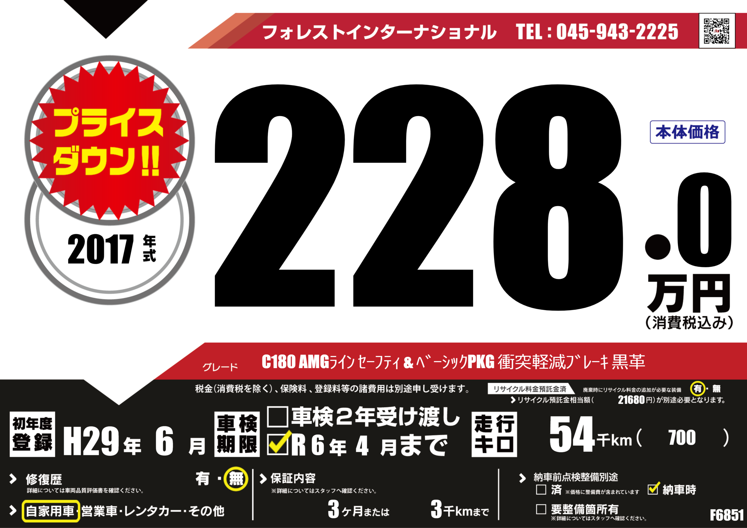C180 AMGライン セーフティ & ベーシックPKG 衝突軽減ブレーキ 黒革 |