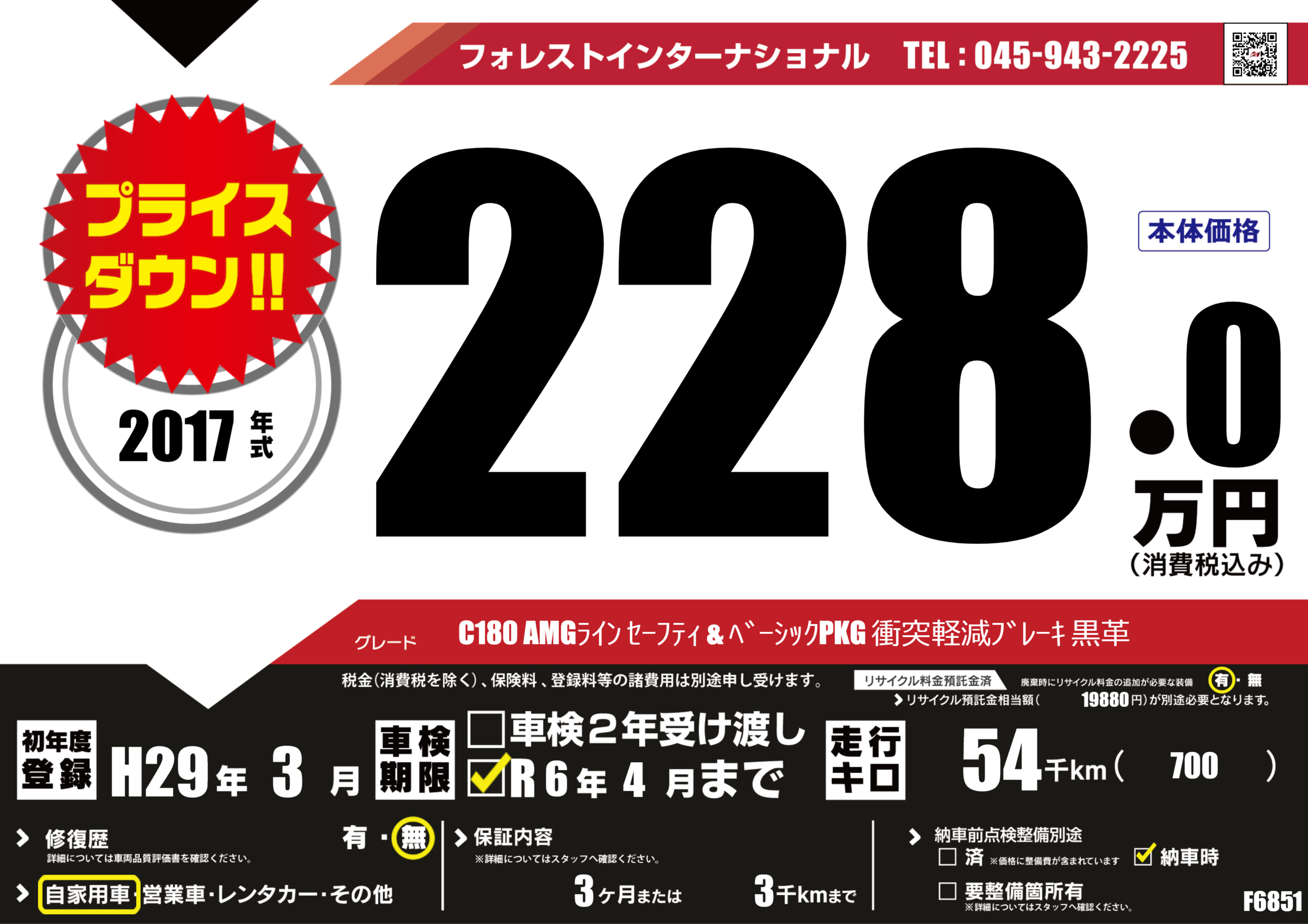 | 走行キロ | 5.4万km | 初年度登録 | H29年3月 |