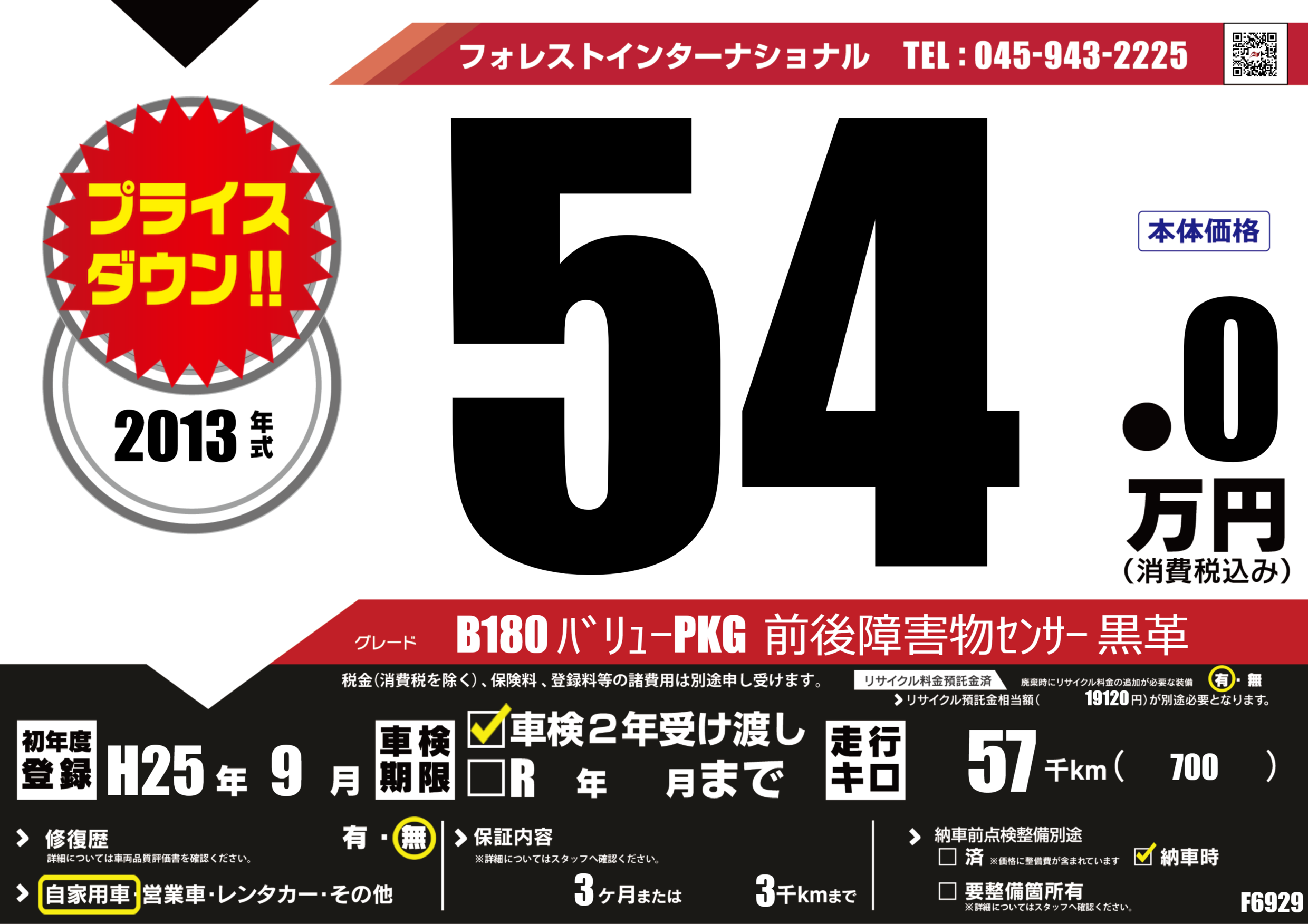 | 走行キロ | 5.7万km | 初年度登録 | H25年9月 |