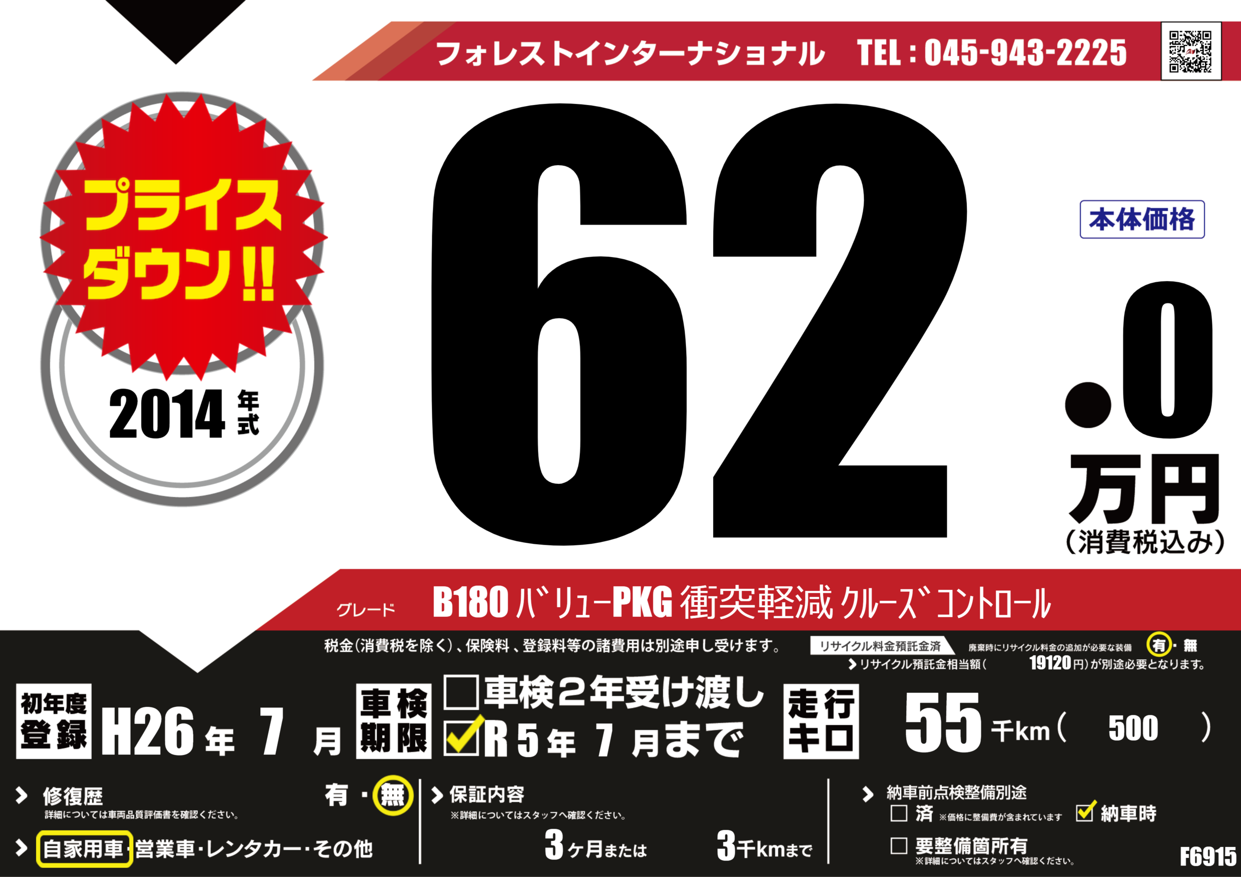 | 走行キロ | 5.5万km | 初年度登録 | H26年7月 |