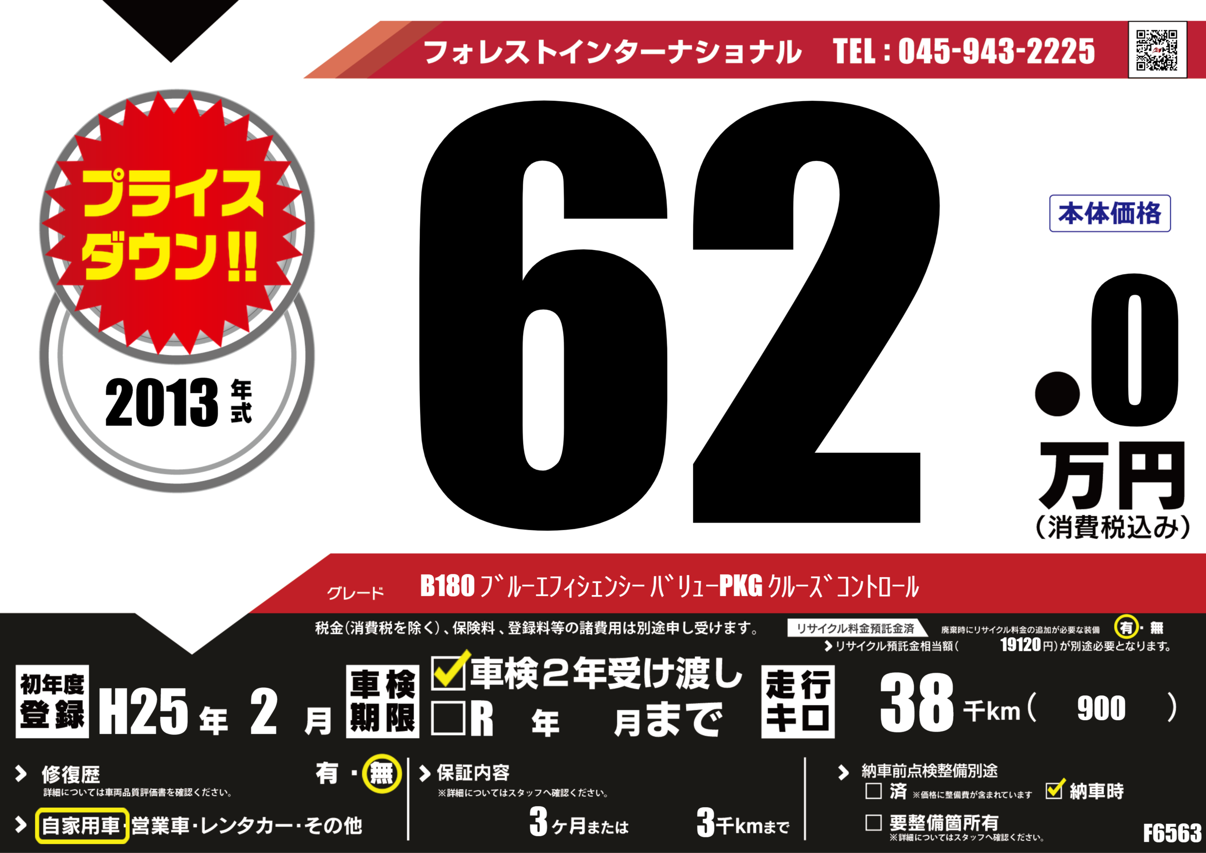 | 走行キロ | 3.8万km | 初年度登録 | H25年2月 |