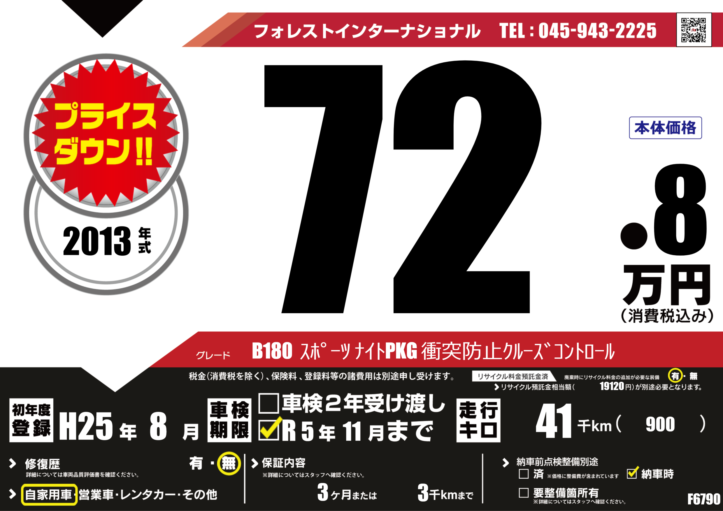 B180 スポーツ ナイトPKG 衝突防止クルーズコントロール |