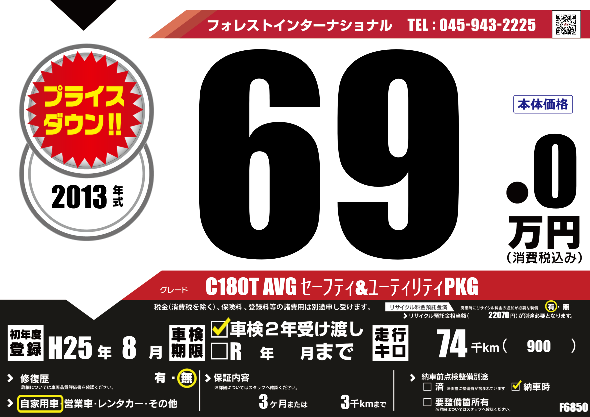 | 走行キロ | 7.4万km | 初年度登録 | H25年8月 |