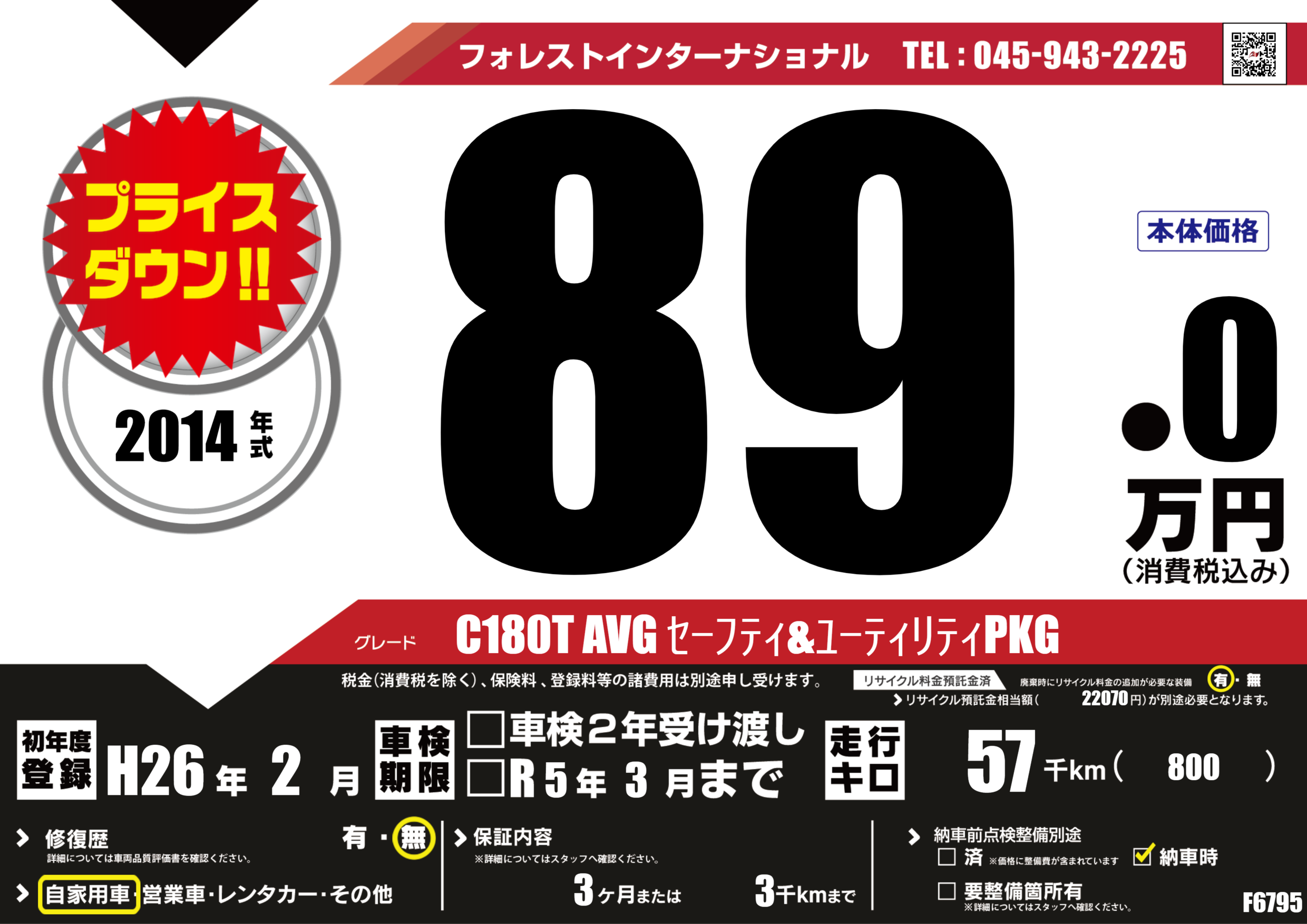 | 走行キロ | 5.7万km | 初年度登録 | H26年2月 |