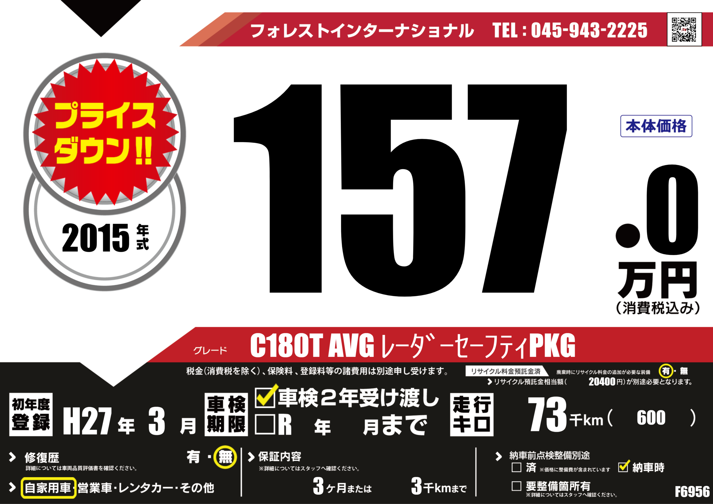 | 走行キロ | 7.3万km | 初年度登録 | H27年3月 |