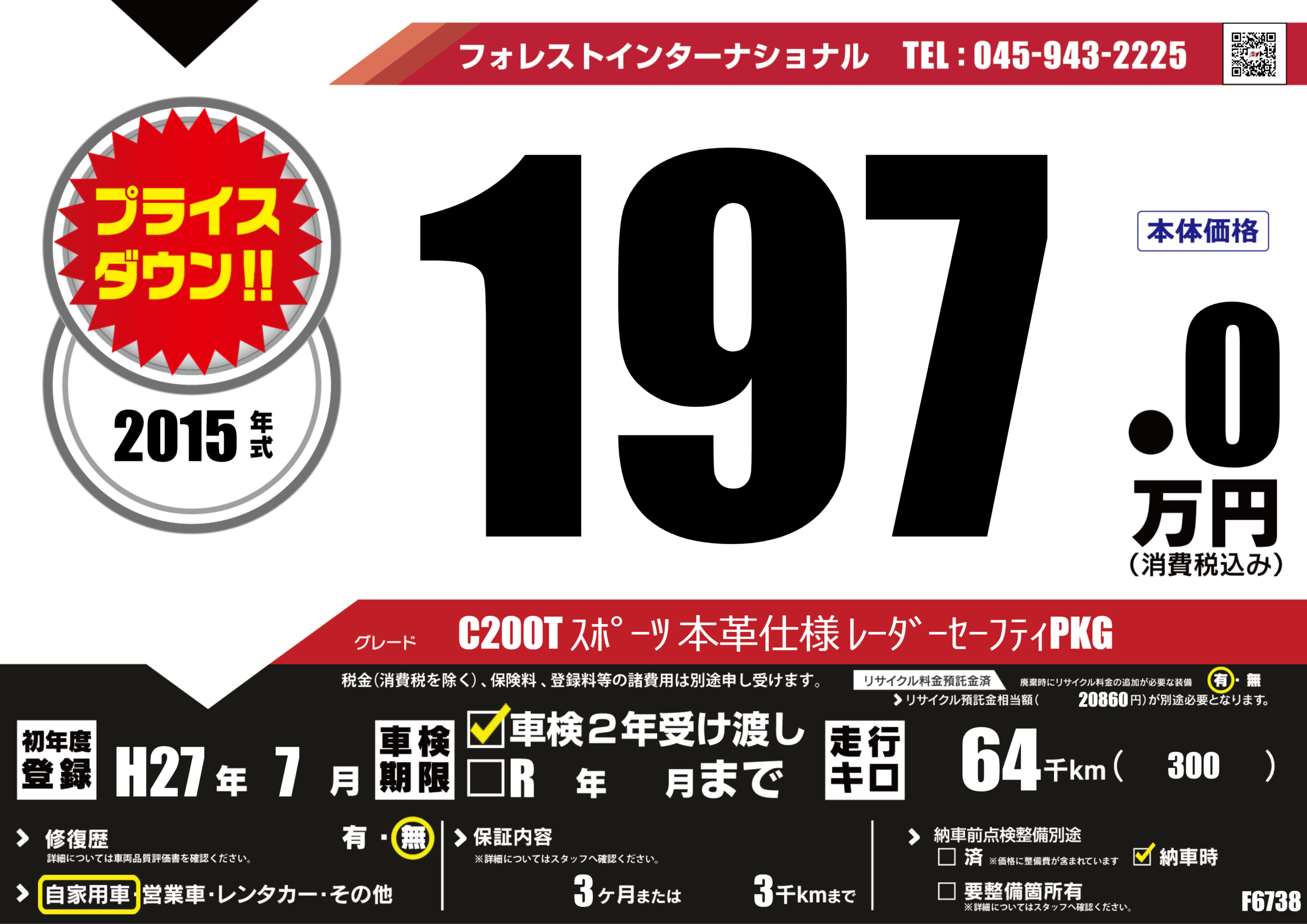 | 走行キロ | 6.4万km | 初年度登録 | H27年7月 |