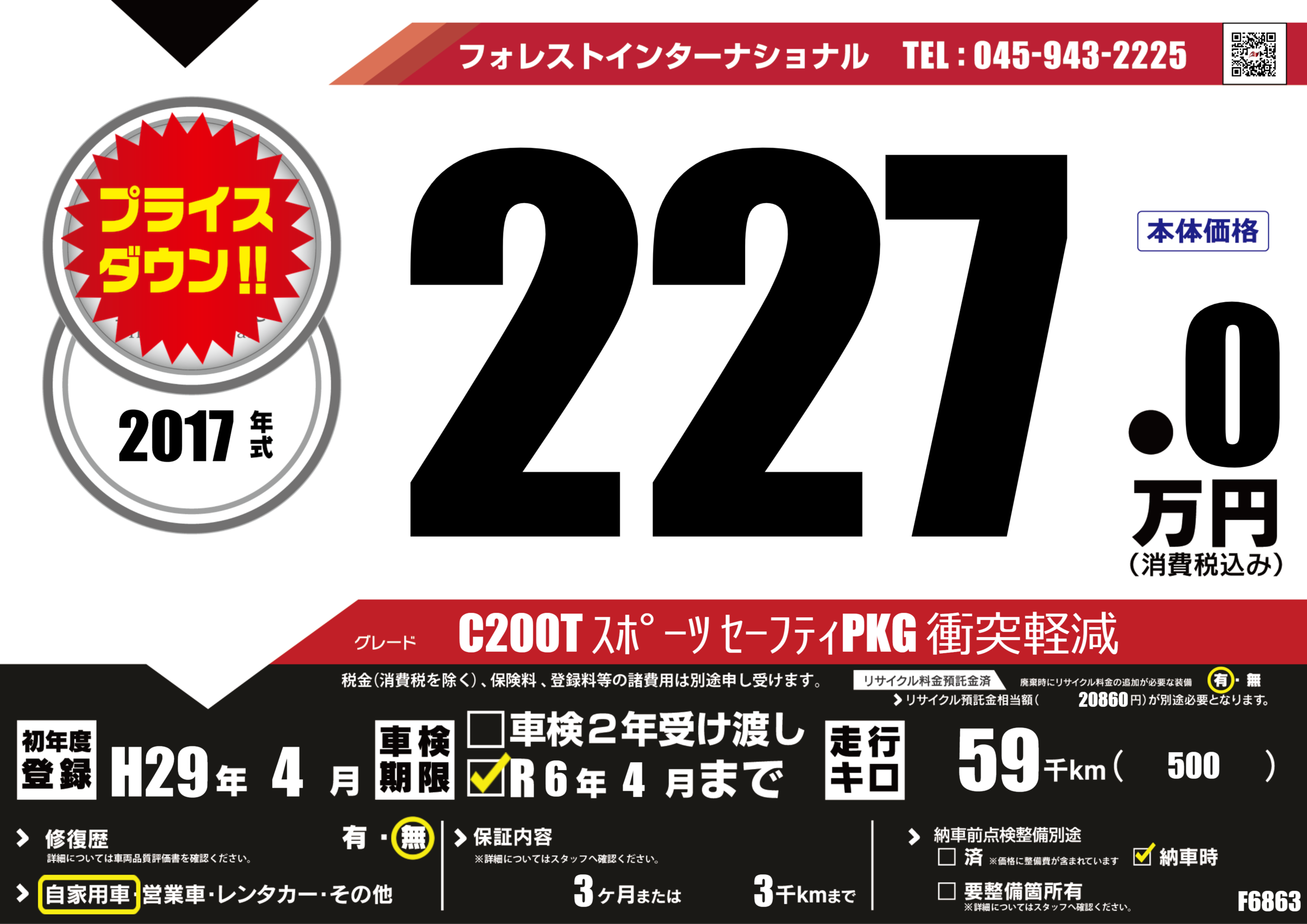 | 走行キロ | 5.9万km | 初年度登録 | H29年4月 |