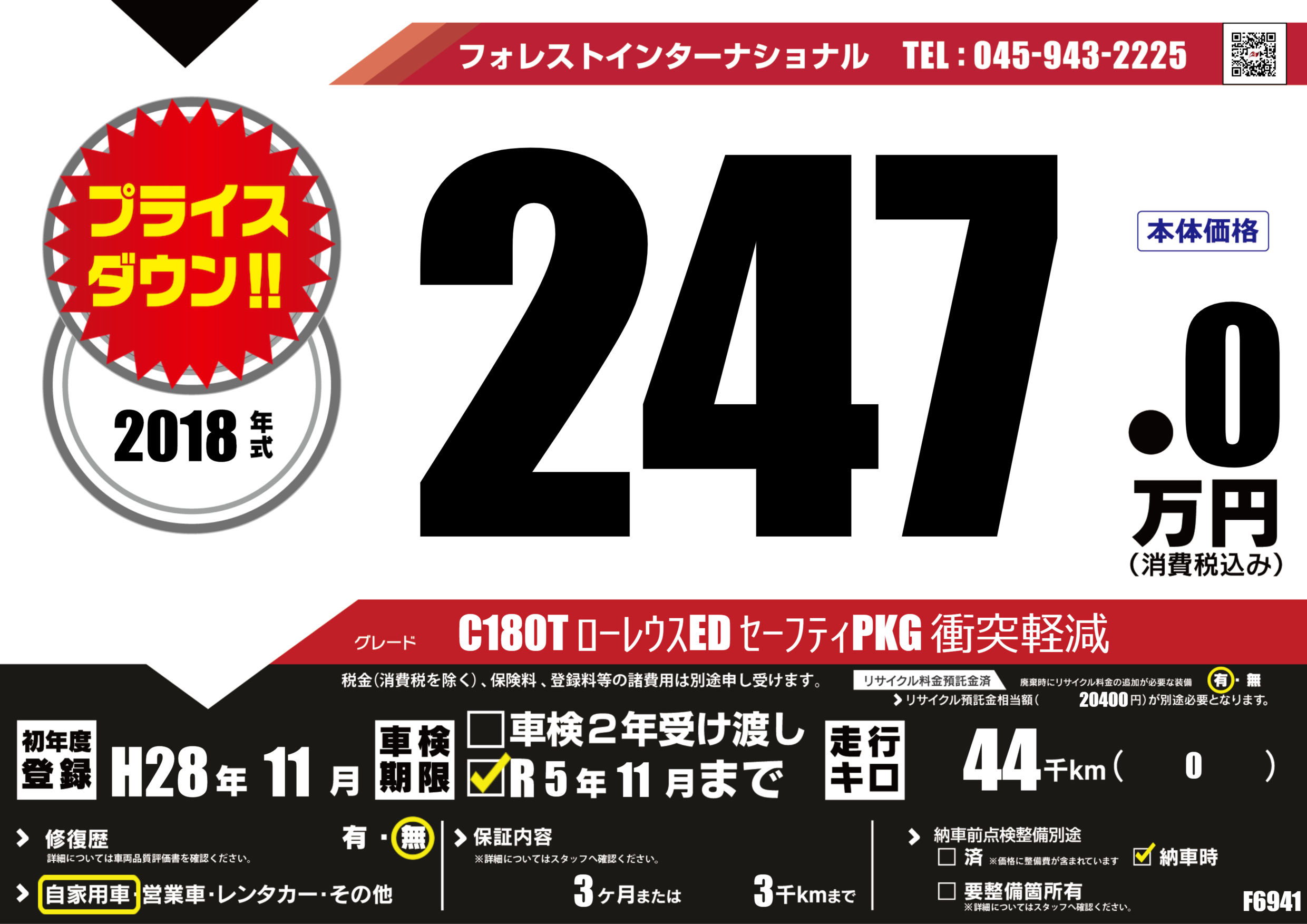 | 走行キロ | 4.4万km | 初年度登録 | H28年11月 |