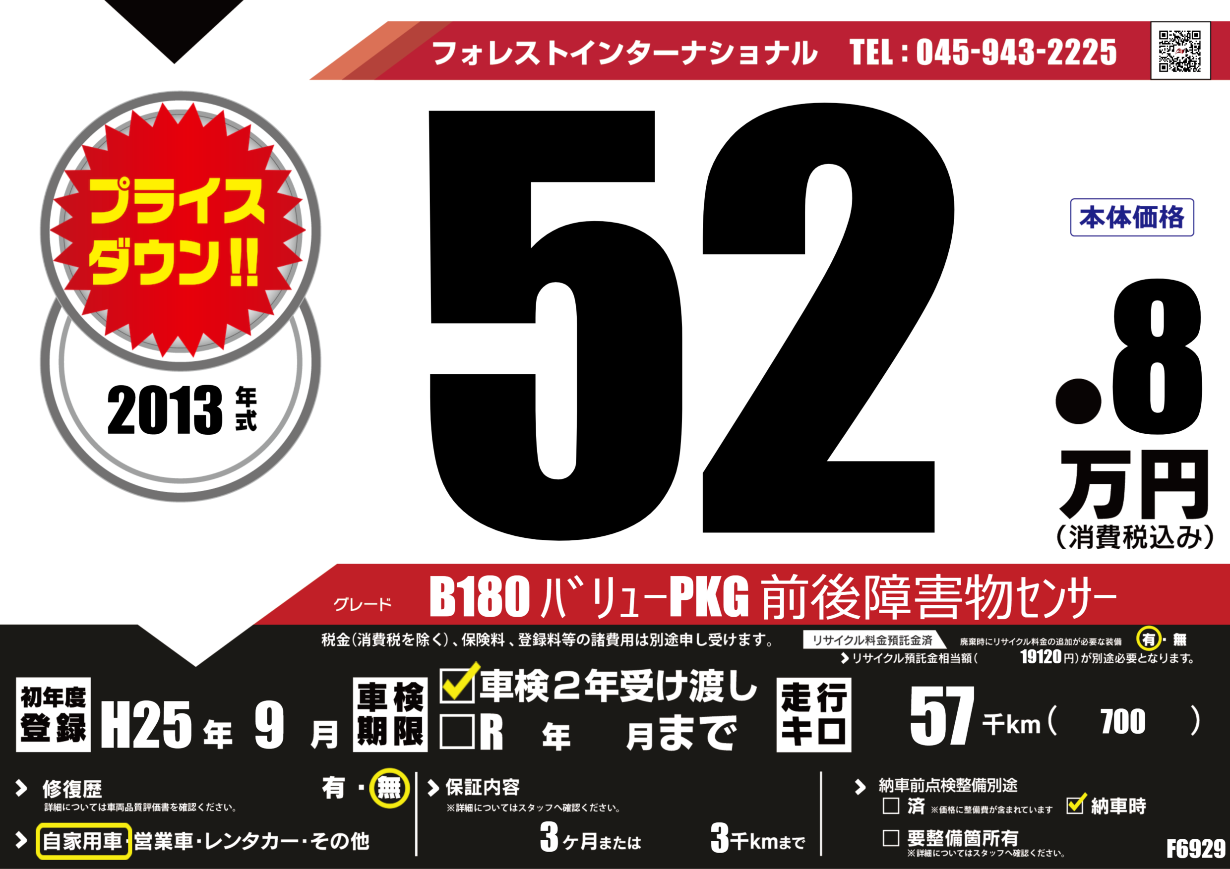 | 走行キロ | 5.7万km | 初年度登録 | H25年9月 |