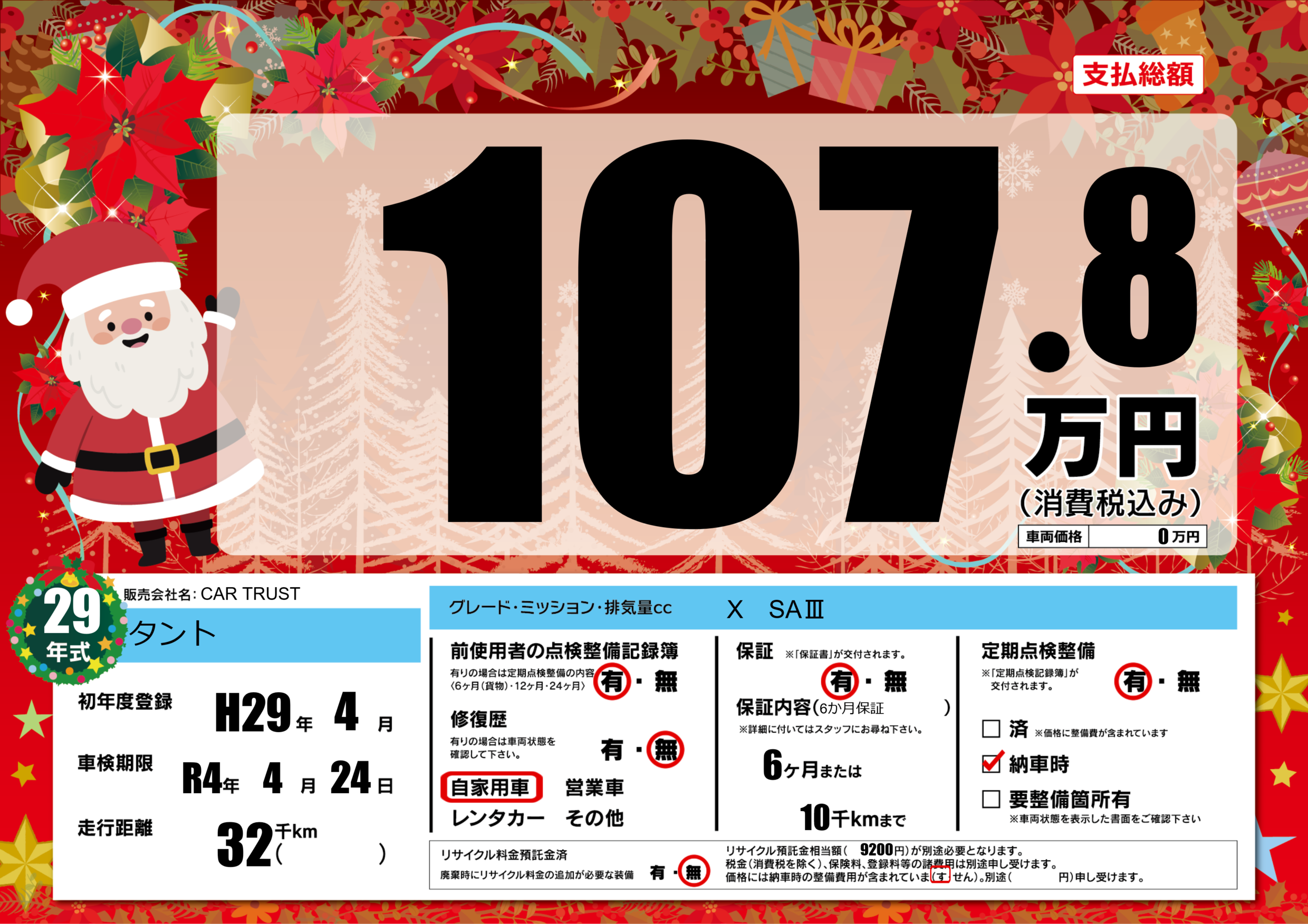 | 定期点検整備 | 定期点検整備あり 納車時あり | ||