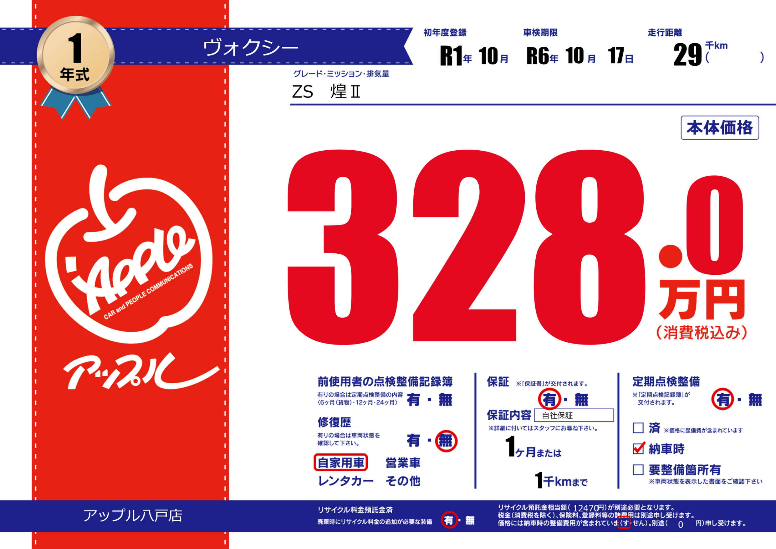 保証付き 保証内容( 自社保証) 1ヶ月または(1)千kmまで |