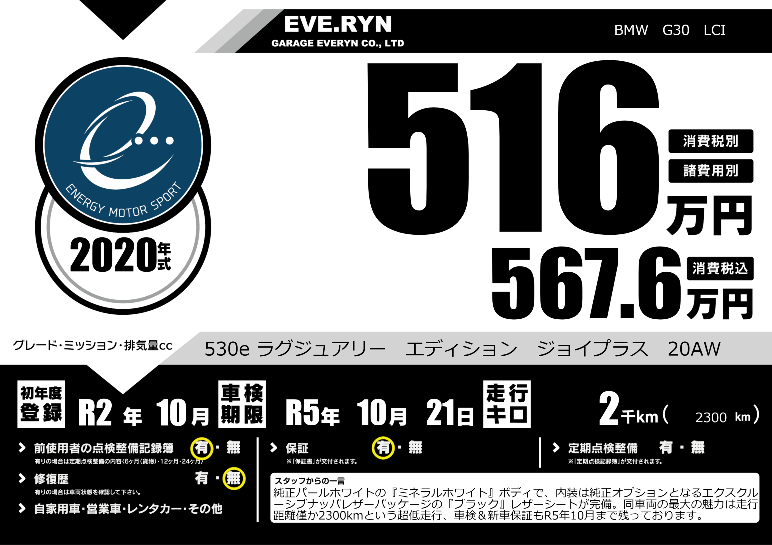 530e ラグジュアリー エディション ジョイプラス 20AW |