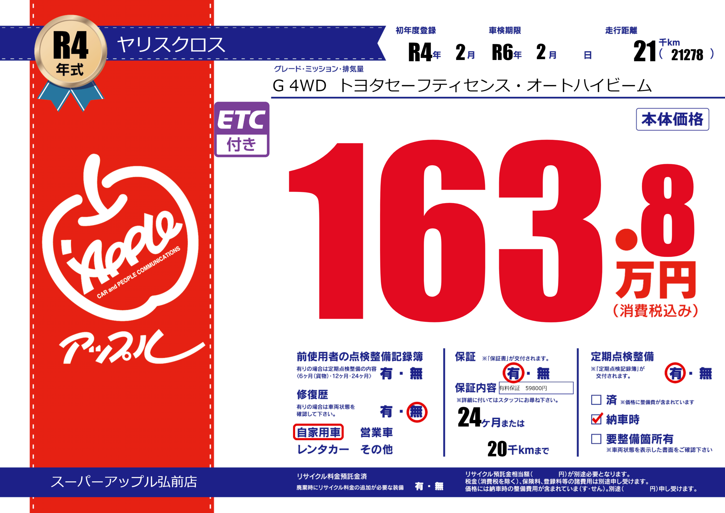 | 走行キロ | 2.1万km | 初年度登録 | R4年2月 |