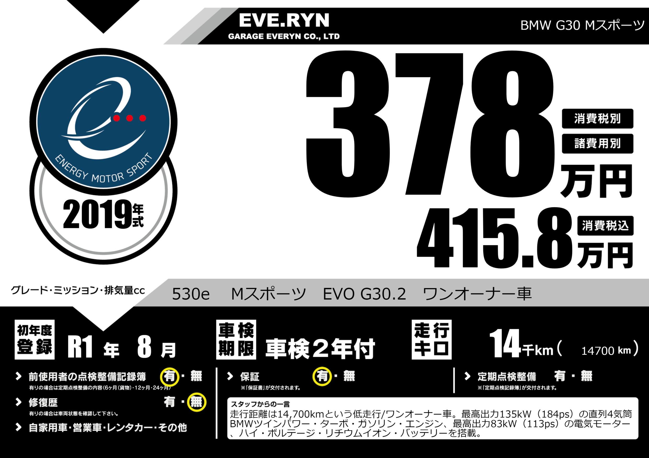 530e Mスポーツ EVO G30.2 ワンオーナー車 |