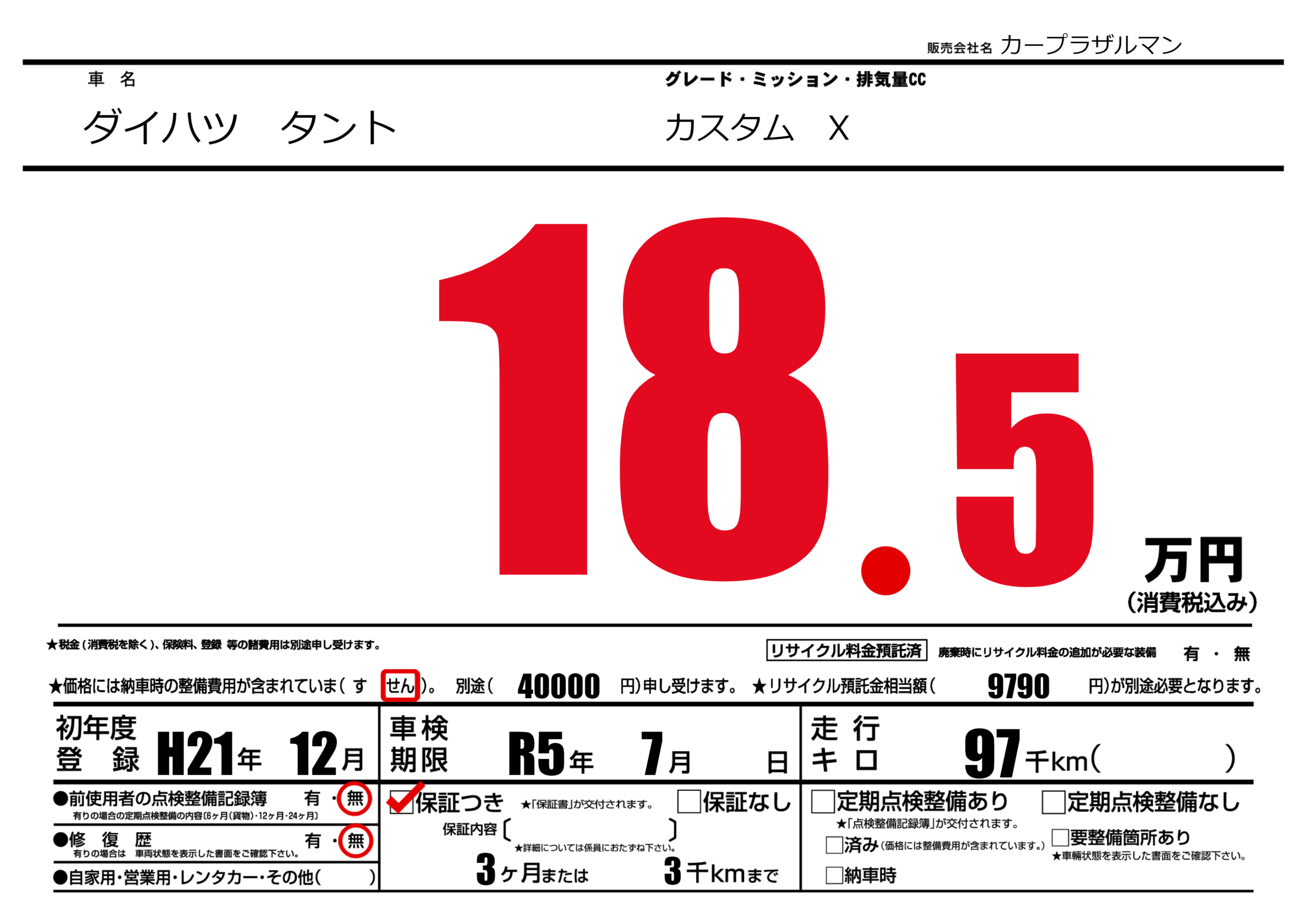 保証付き 保証内容(---) 3ヶ月または(3)千kmまで |