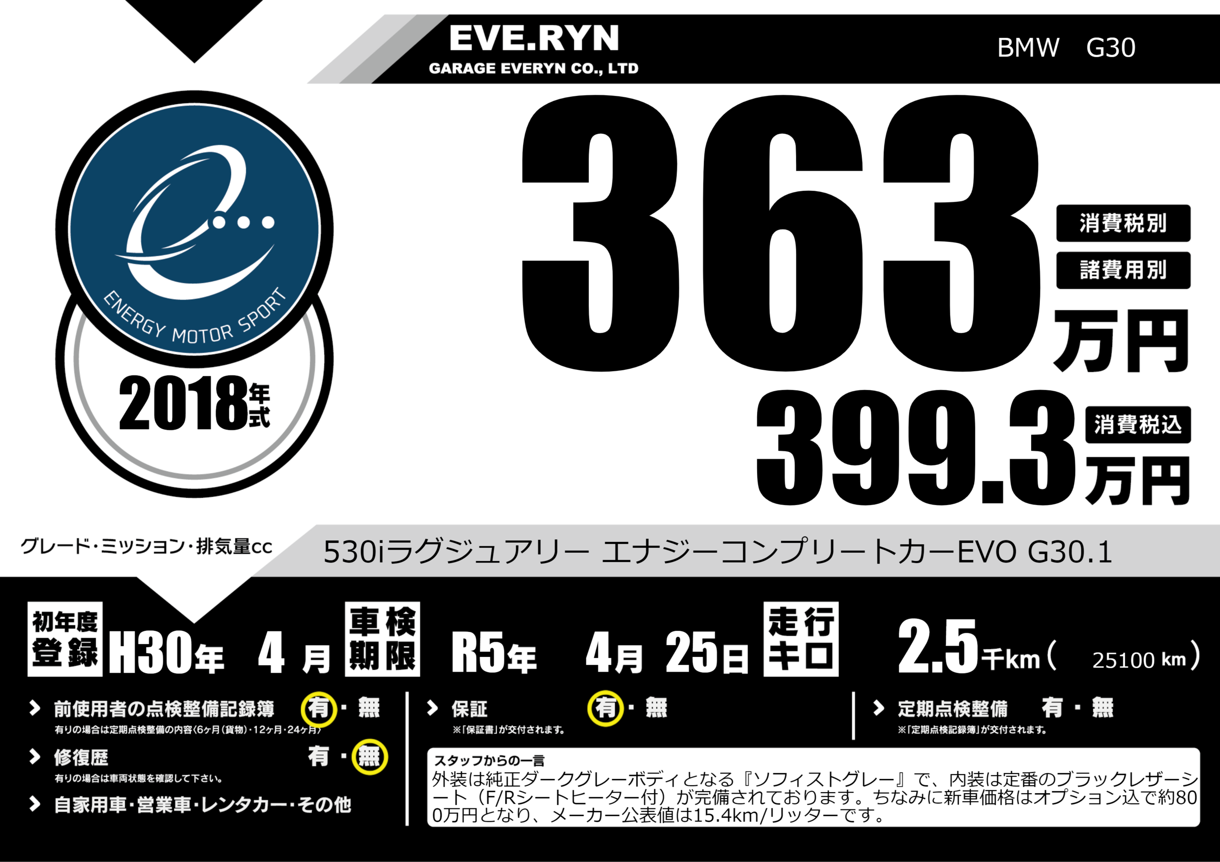 530iラグジュアリー エナジーコンプリートカーEVO G30.1 |