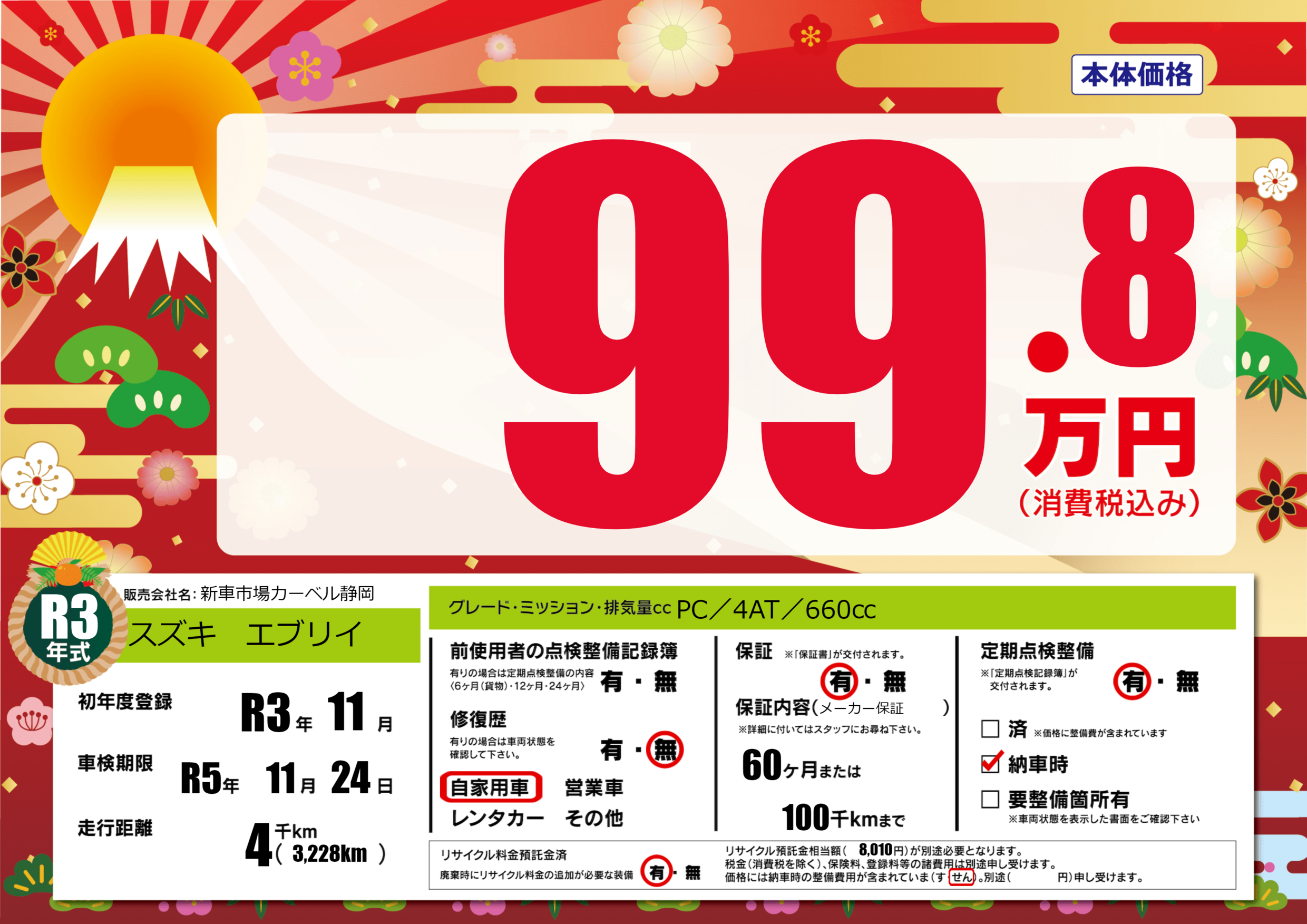 | 走行キロ | 0.4万km | 初年度登録 | R3年11月 |