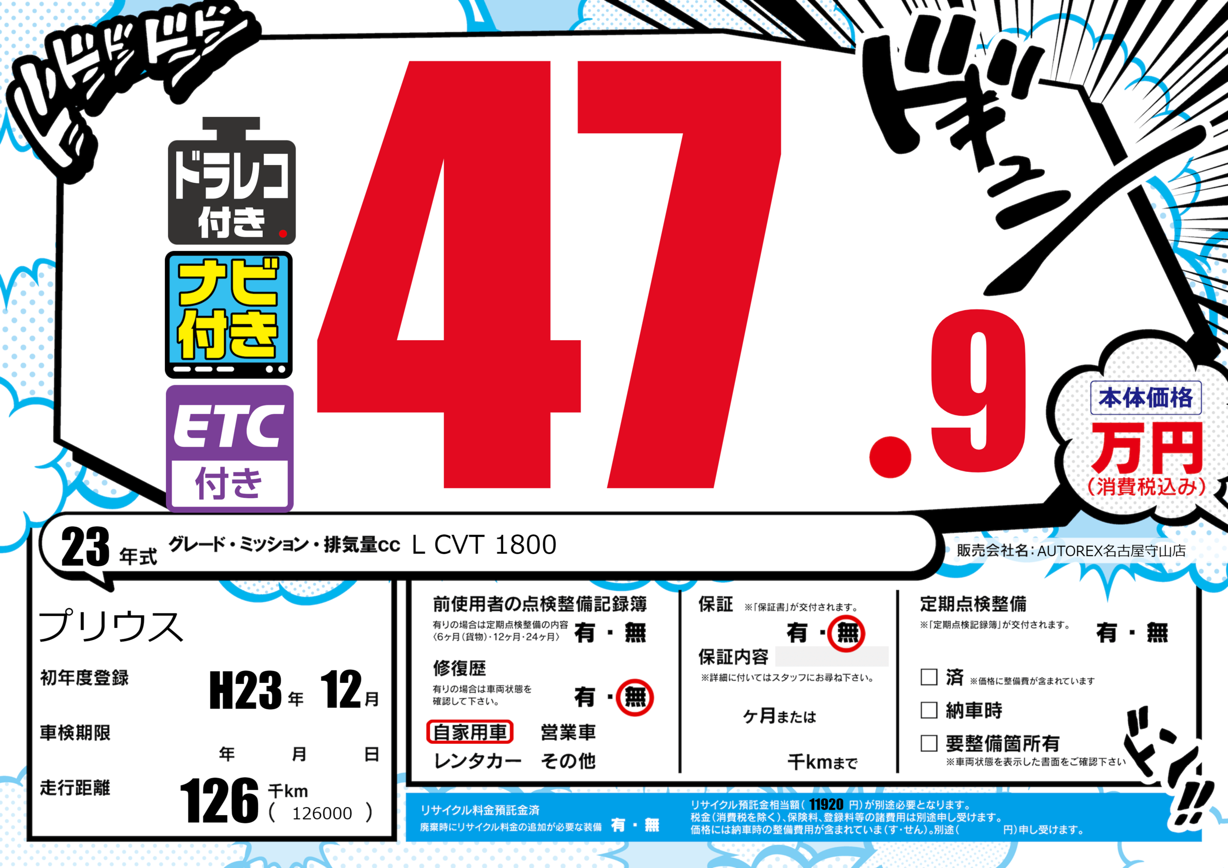 | 走行キロ | 12.6万km | 初年度登録 | H23年12月 |