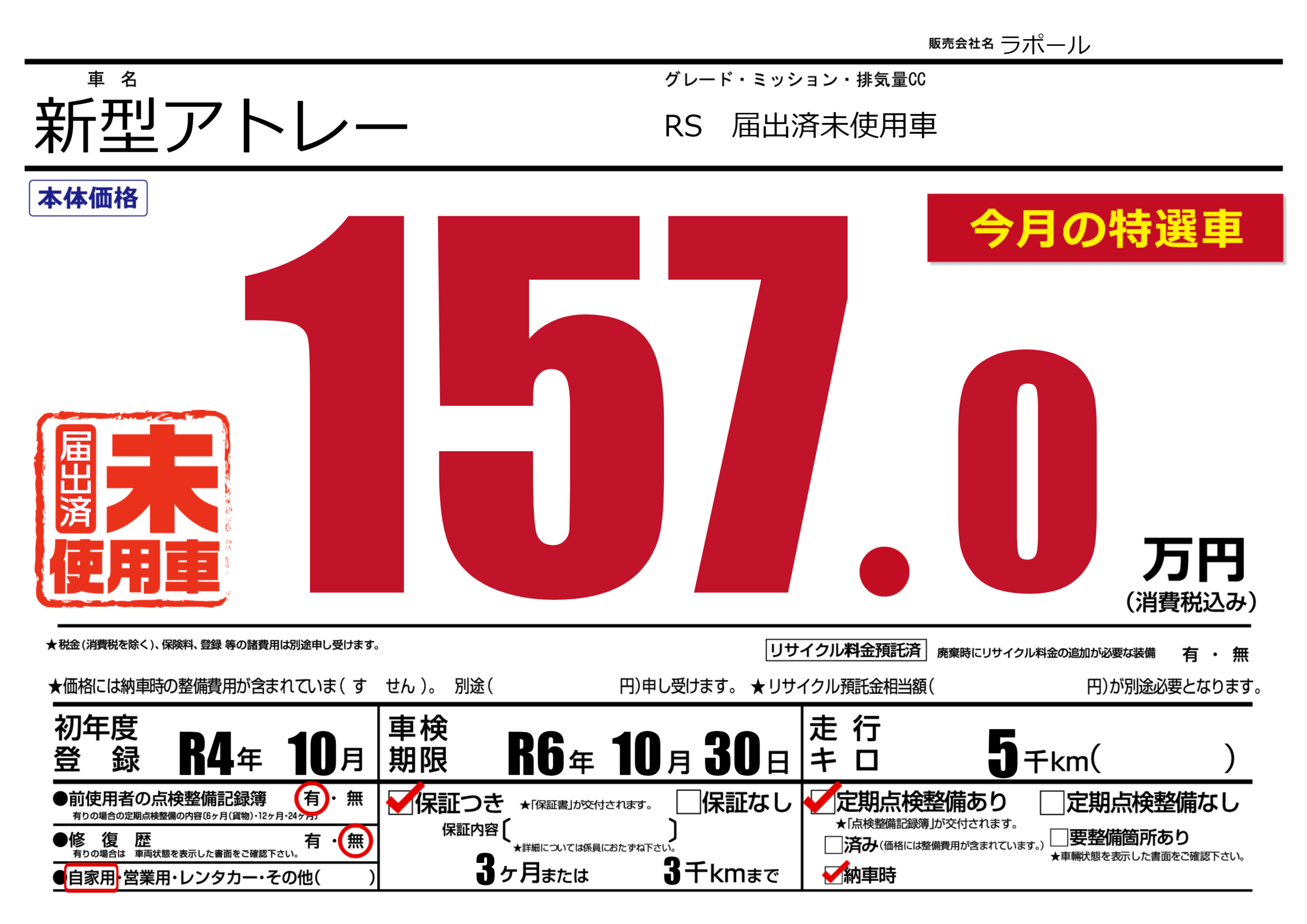 RS 届出済未使用車 |