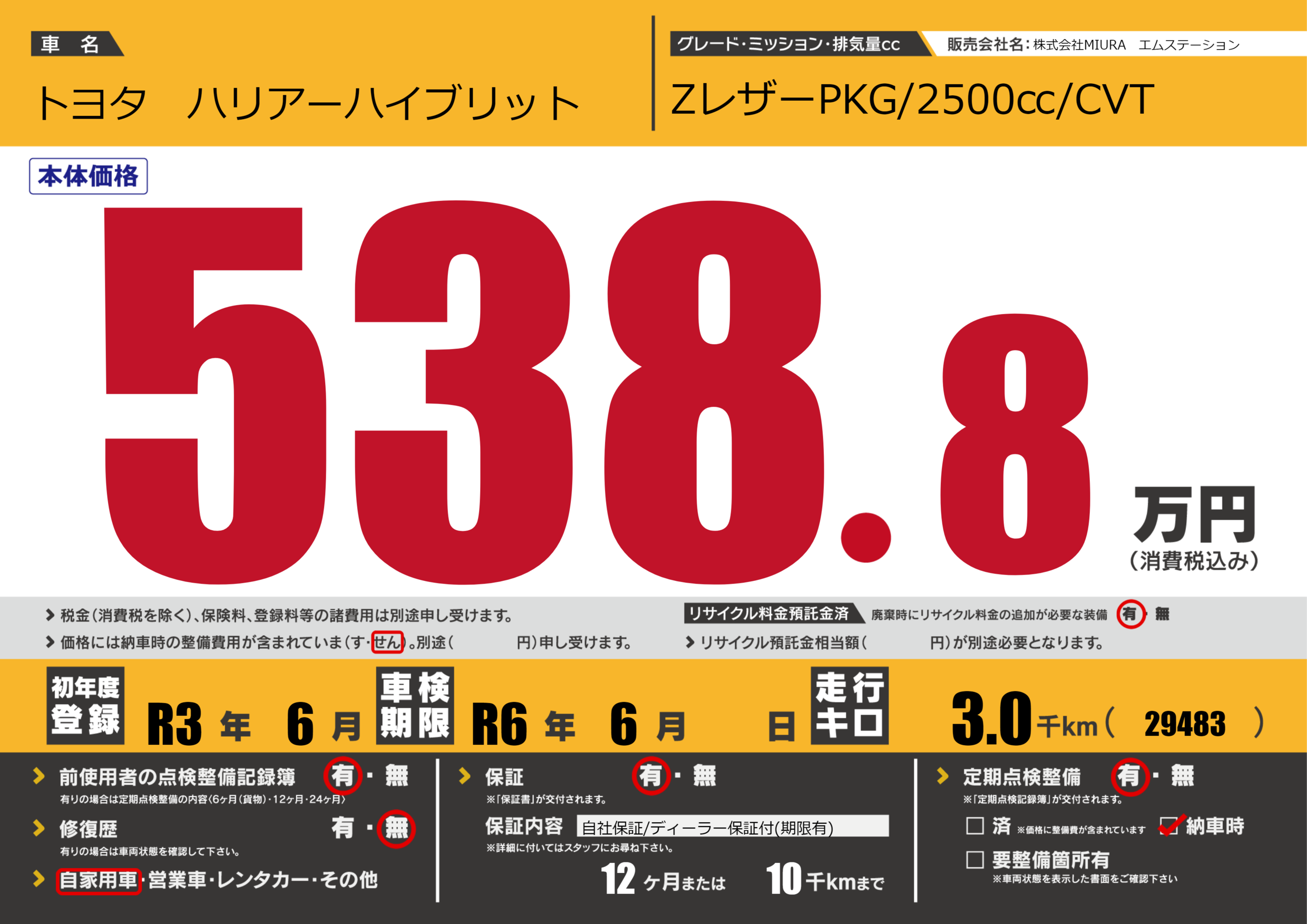 | 車検制限 | R6年 6月 - 日 | ||
