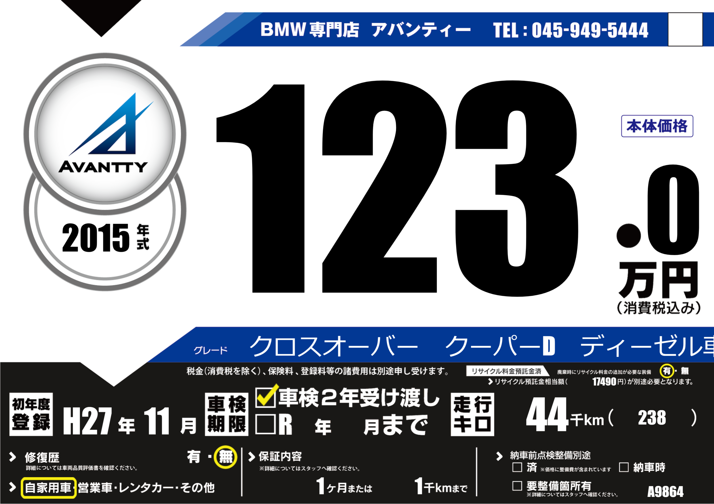 クロスオーバー クーパーD ディーゼル車! |