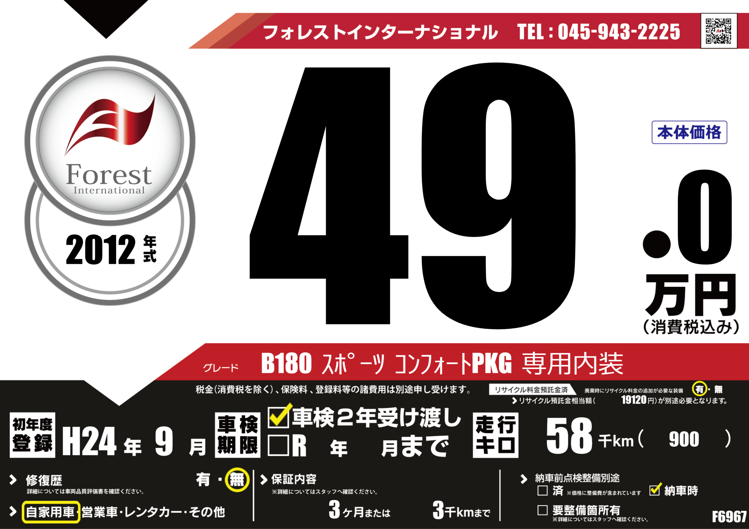 | 走行キロ | 5.8万km | 初年度登録 | H24年9月 |