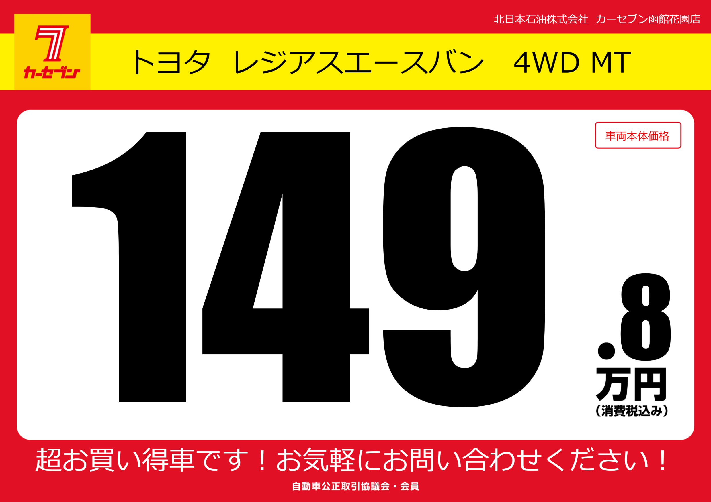 | 車名 | トヨタ レジアスエースバン 4WD MT | グレード ミッション 排気量 |