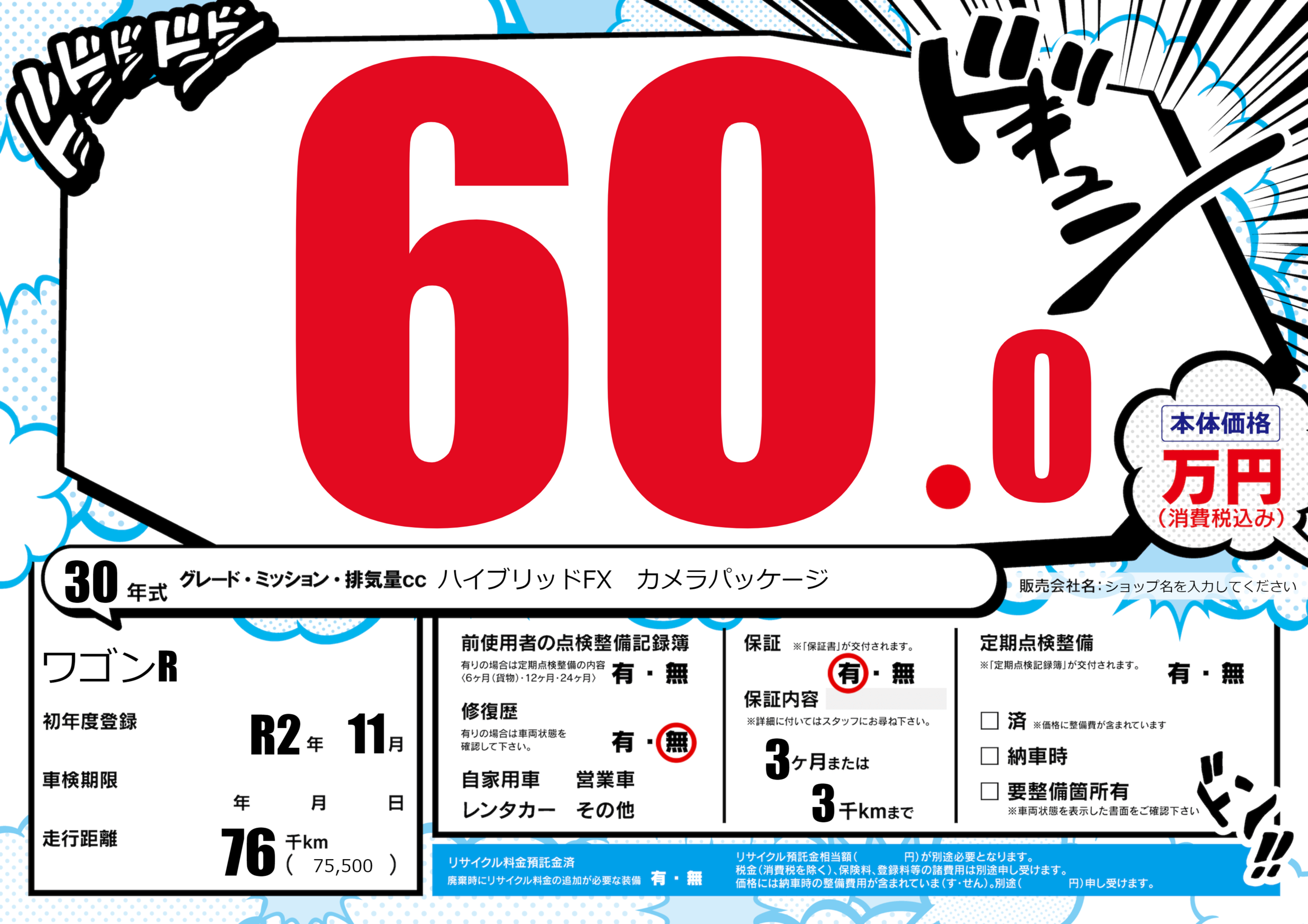 | 車名 | ワゴンR | グレード ミッション 排気量 |