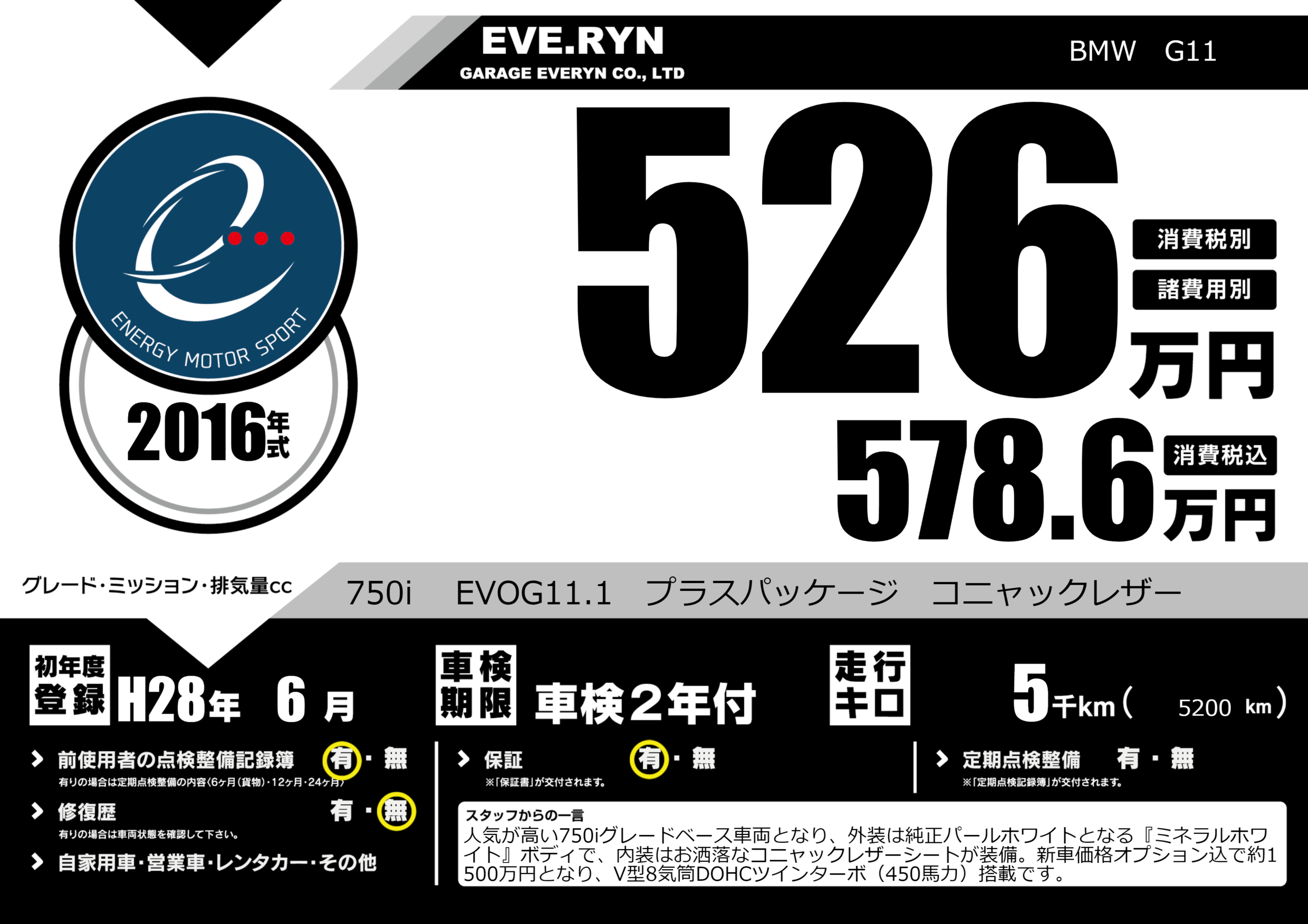 750i EVOG11.1 プラスパッケージ コニャックレザー |