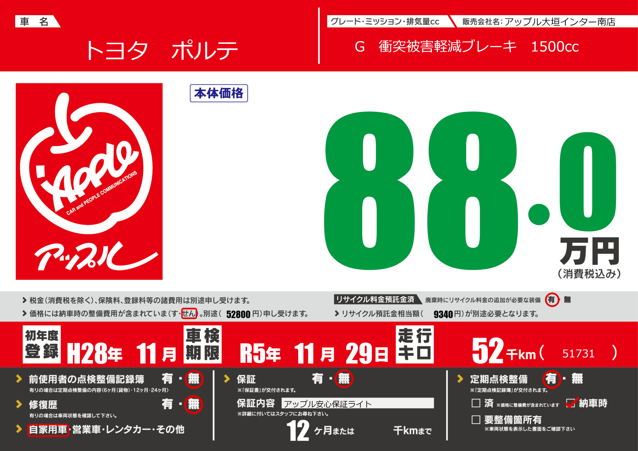 保証なし 保証内容(アップル安心保証ライト) 12ヶ月または()千kmまで |