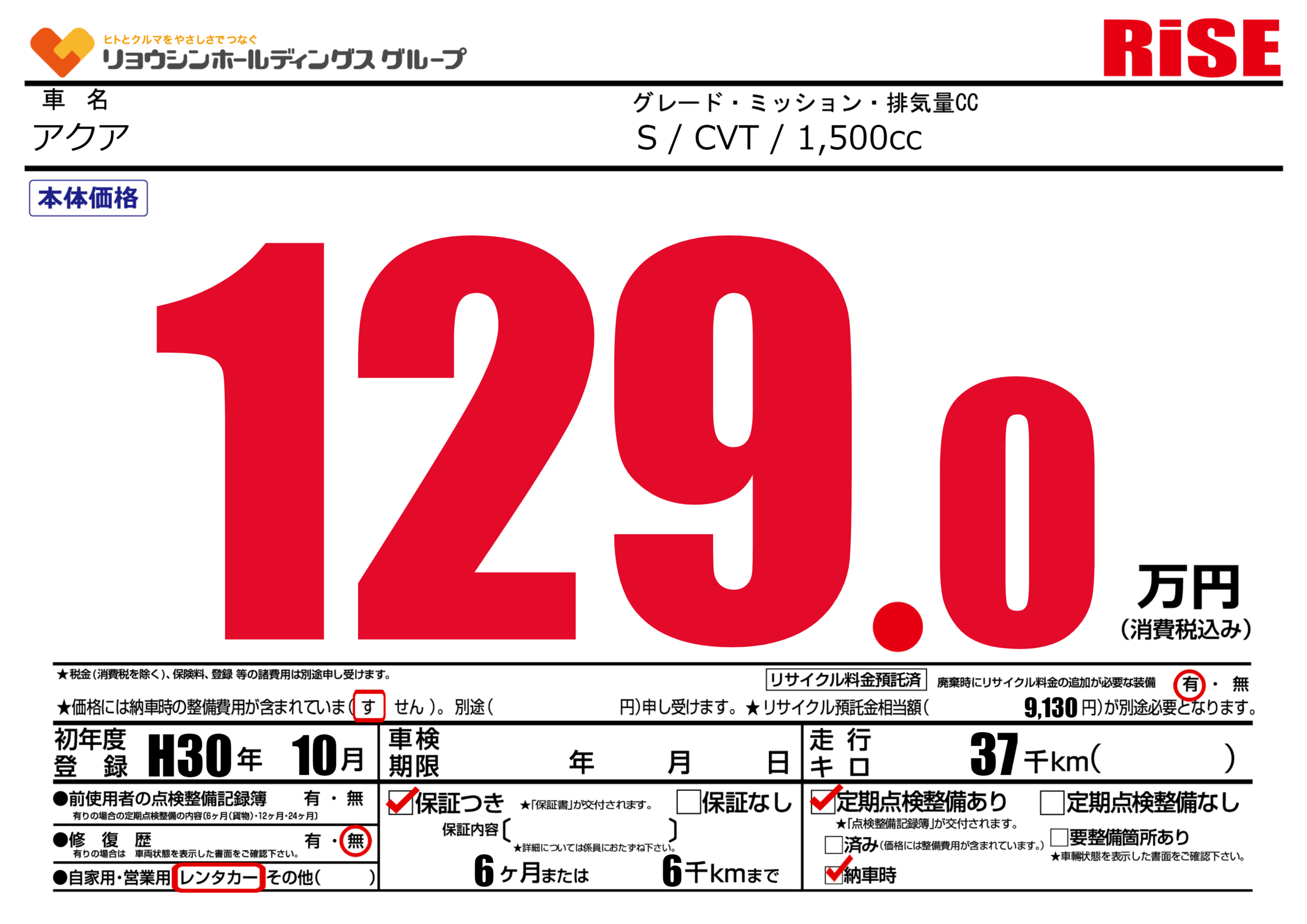 保証付き 保証内容(---) 6ヶ月または(6)千kmまで |