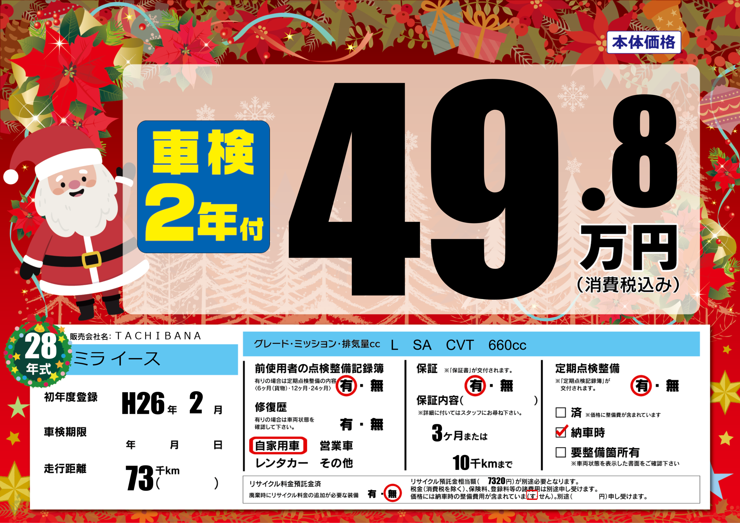 | 定期点検整備 | 定期点検整備あり 納車時あり | ||