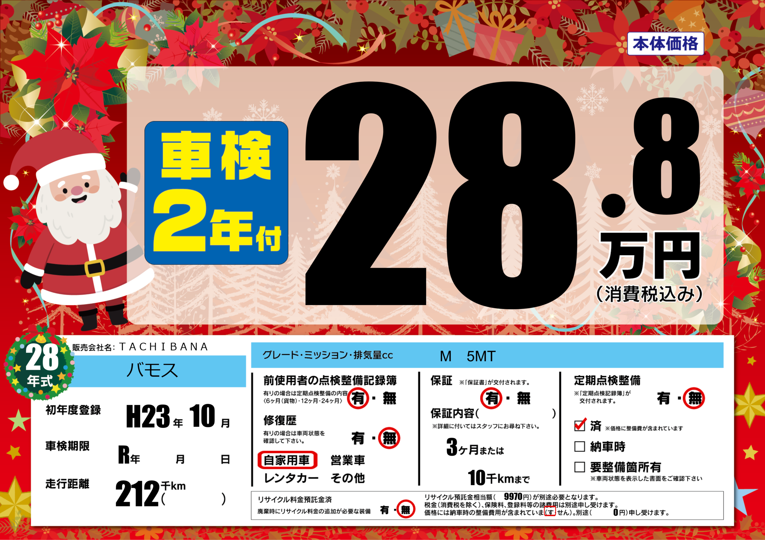 | 定期点検整備 | 定期点検整備なし 定期点検整備済み | ||