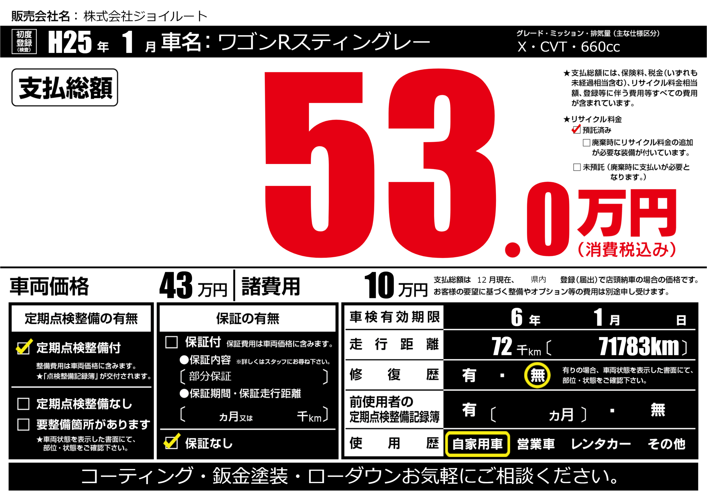 | 車検制限 | 6年 1月 - 日 | ||
