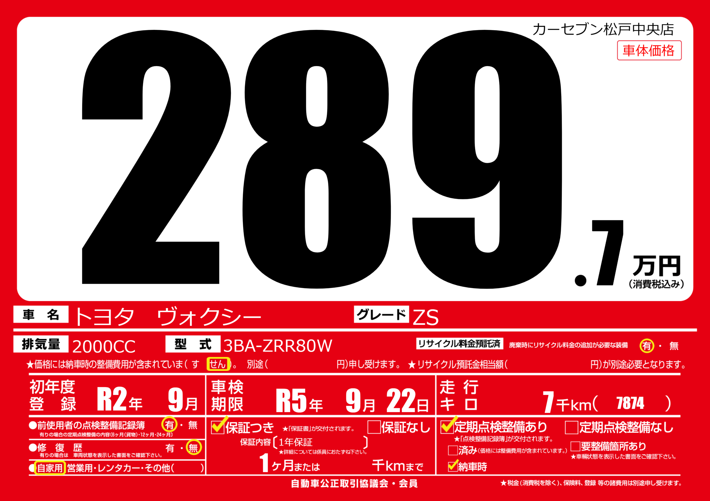 なし | 車検制限 | R5年9月22月 |