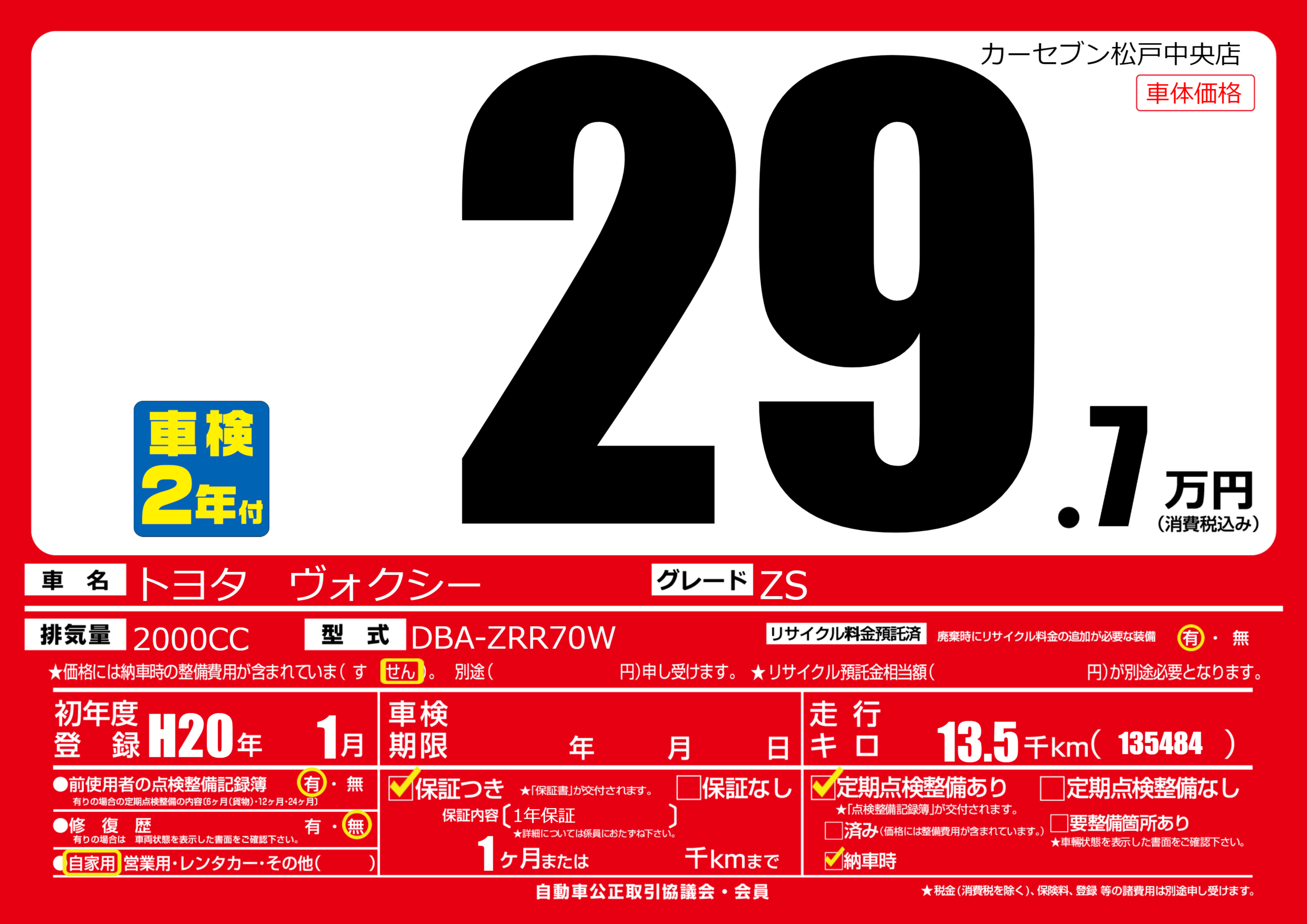 | 車名 | トヨタ ヴォクシー | グレード ミッション 排気量 |
