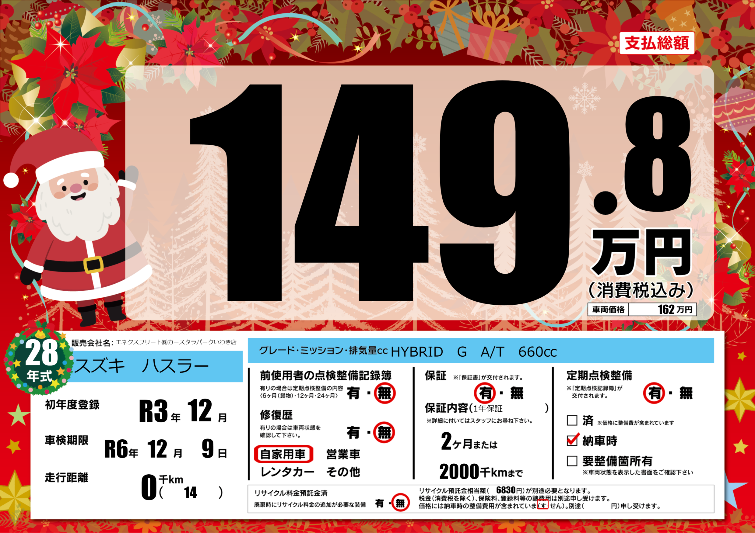 | 定期点検整備 | 定期点検整備あり 納車時あり | ||