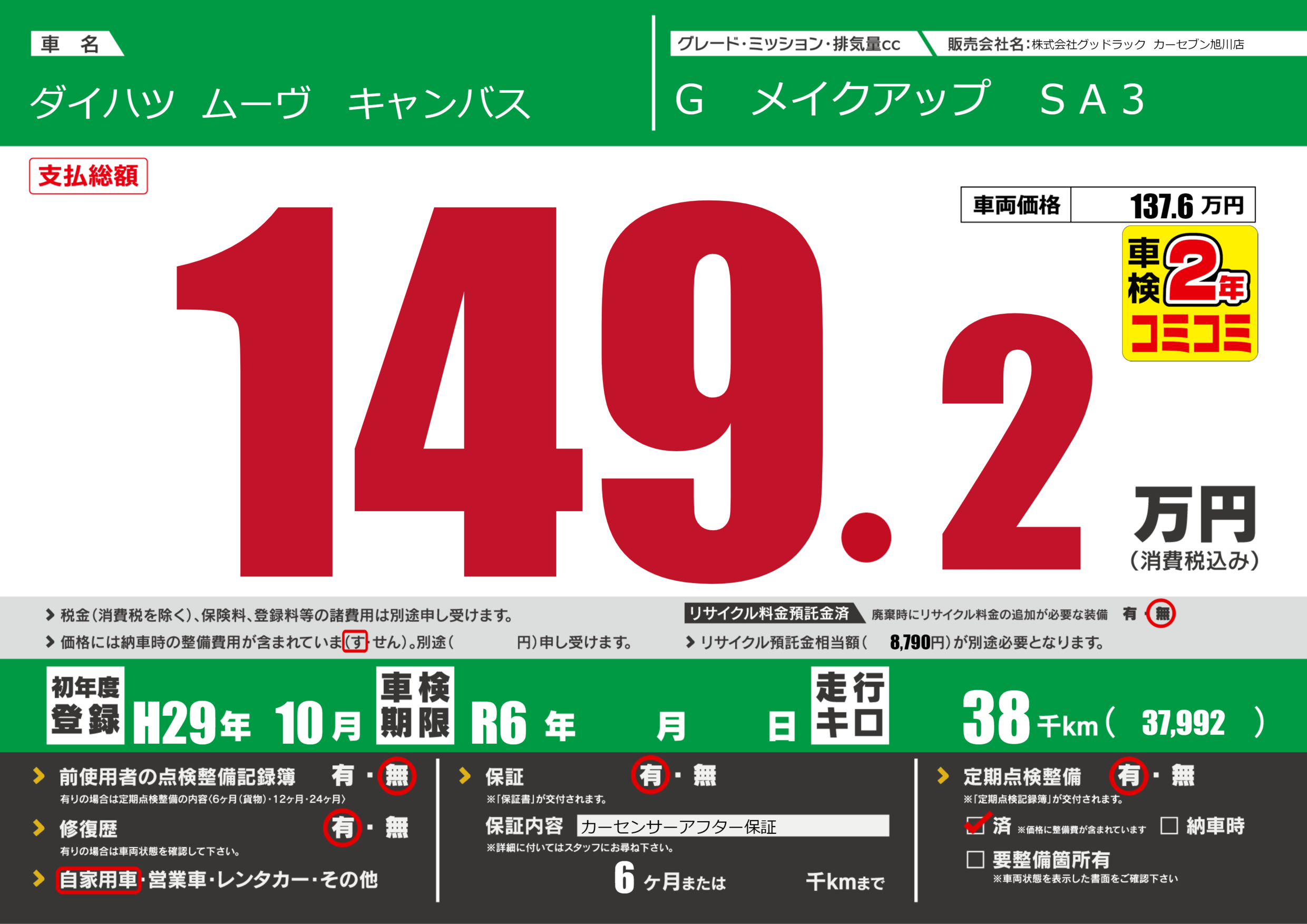 | 定期点検整備 | 定期点検整備あり 定期点検整備済み | ||