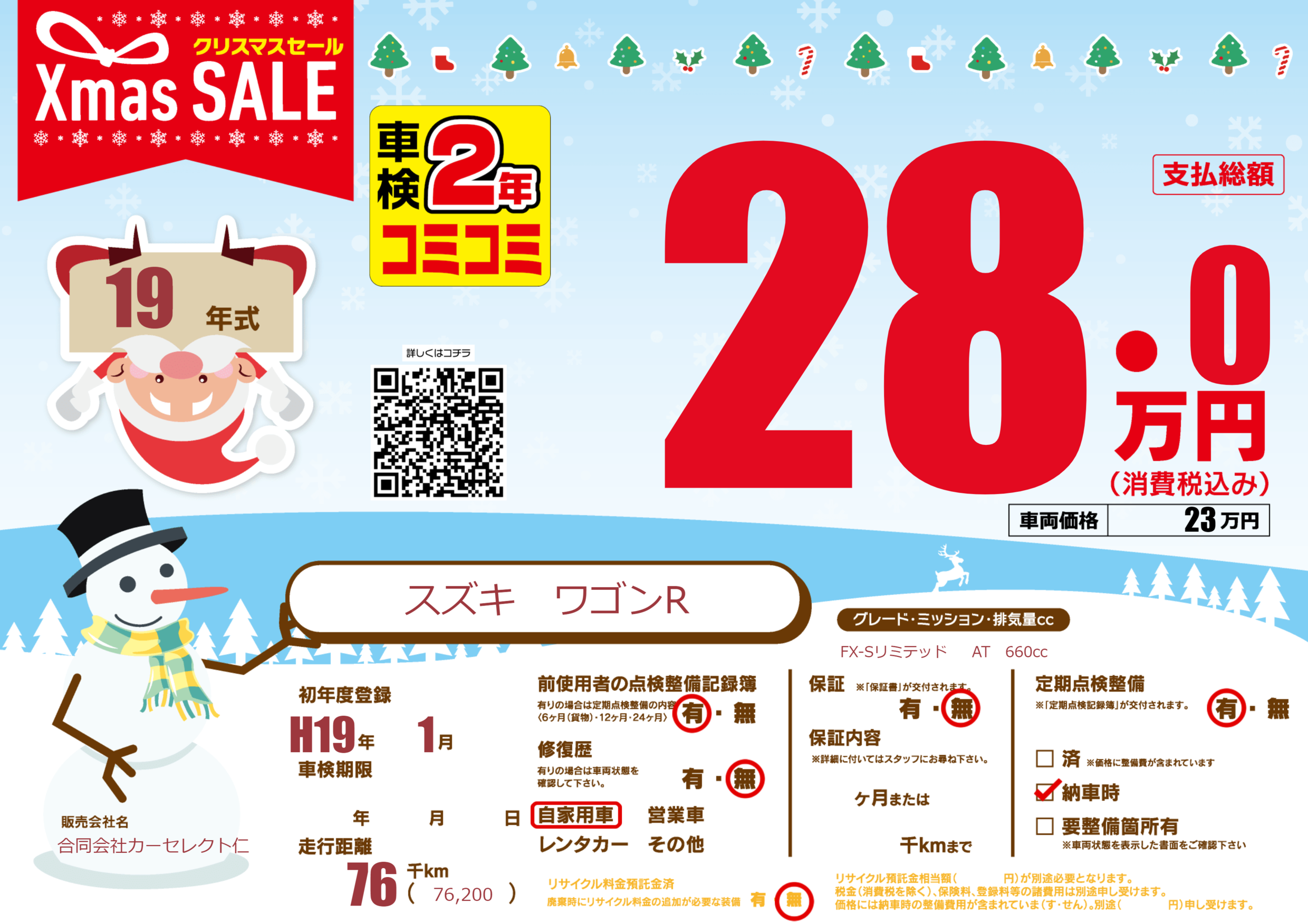 | 走行キロ | 7.6万km | 初年度登録 | H19年1月 |