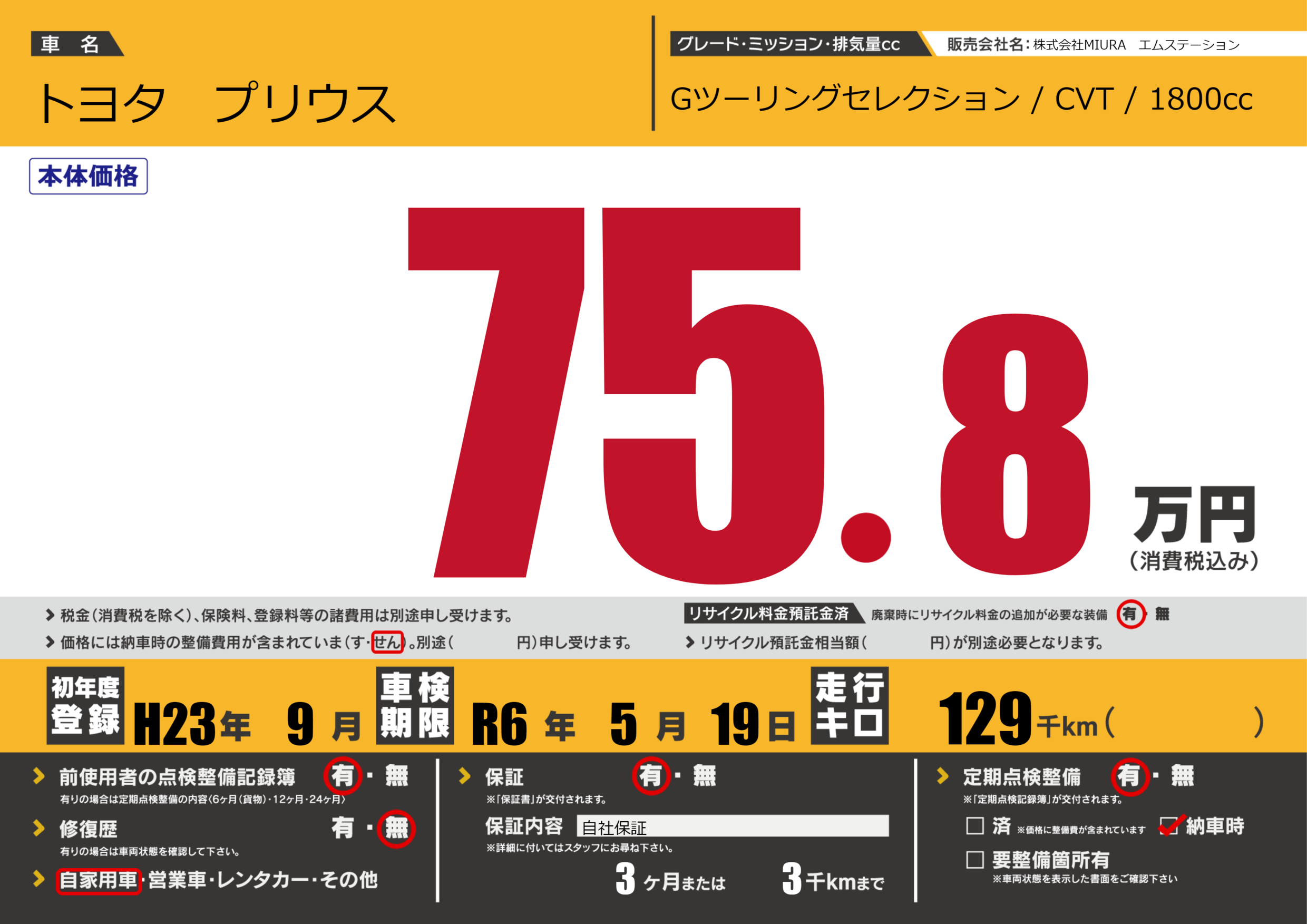 保証付き 保証内容(自社保証) 3ヶ月または3千km |