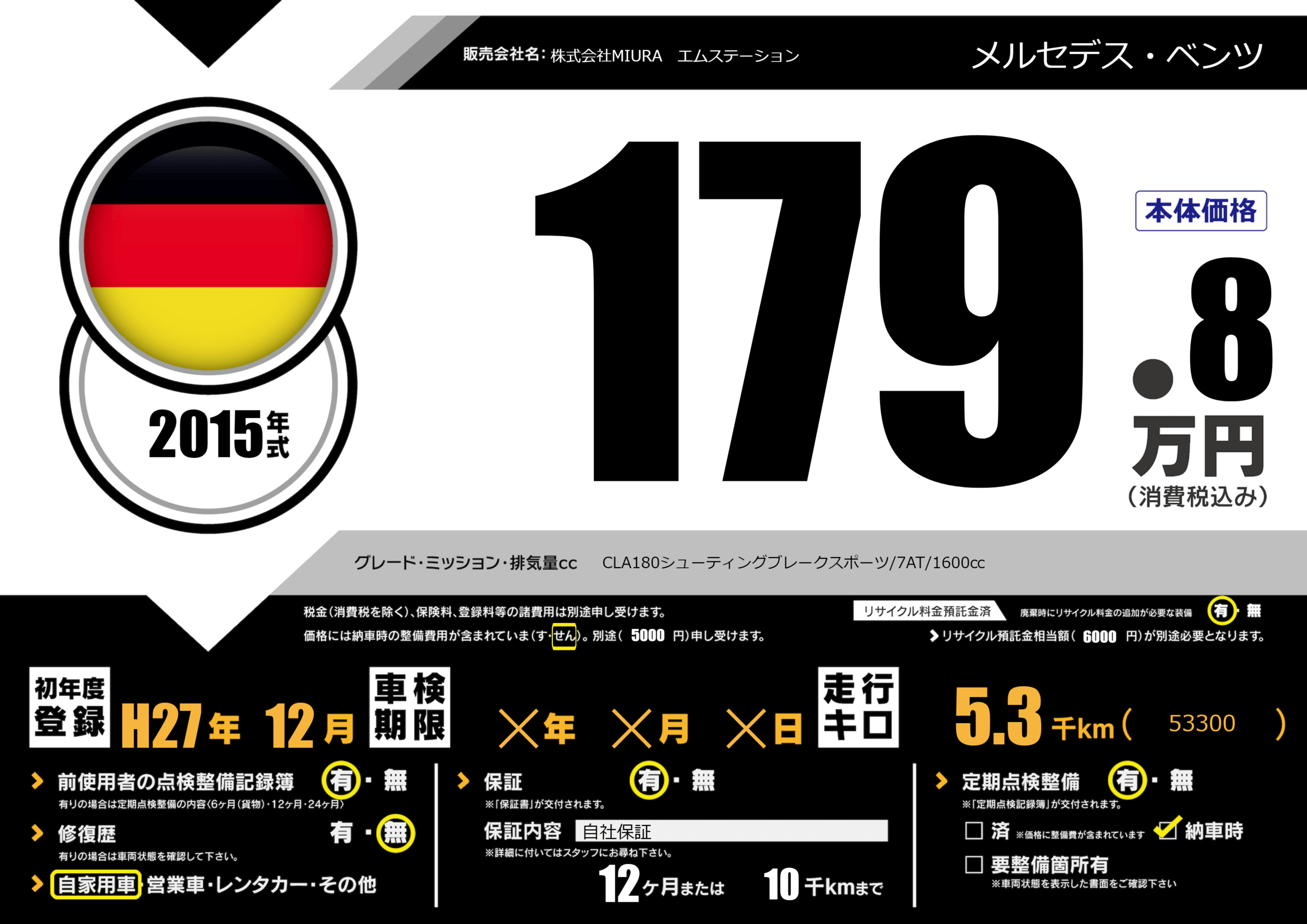| 車検制限 | ✕年 ✕月 ✕日 | ||