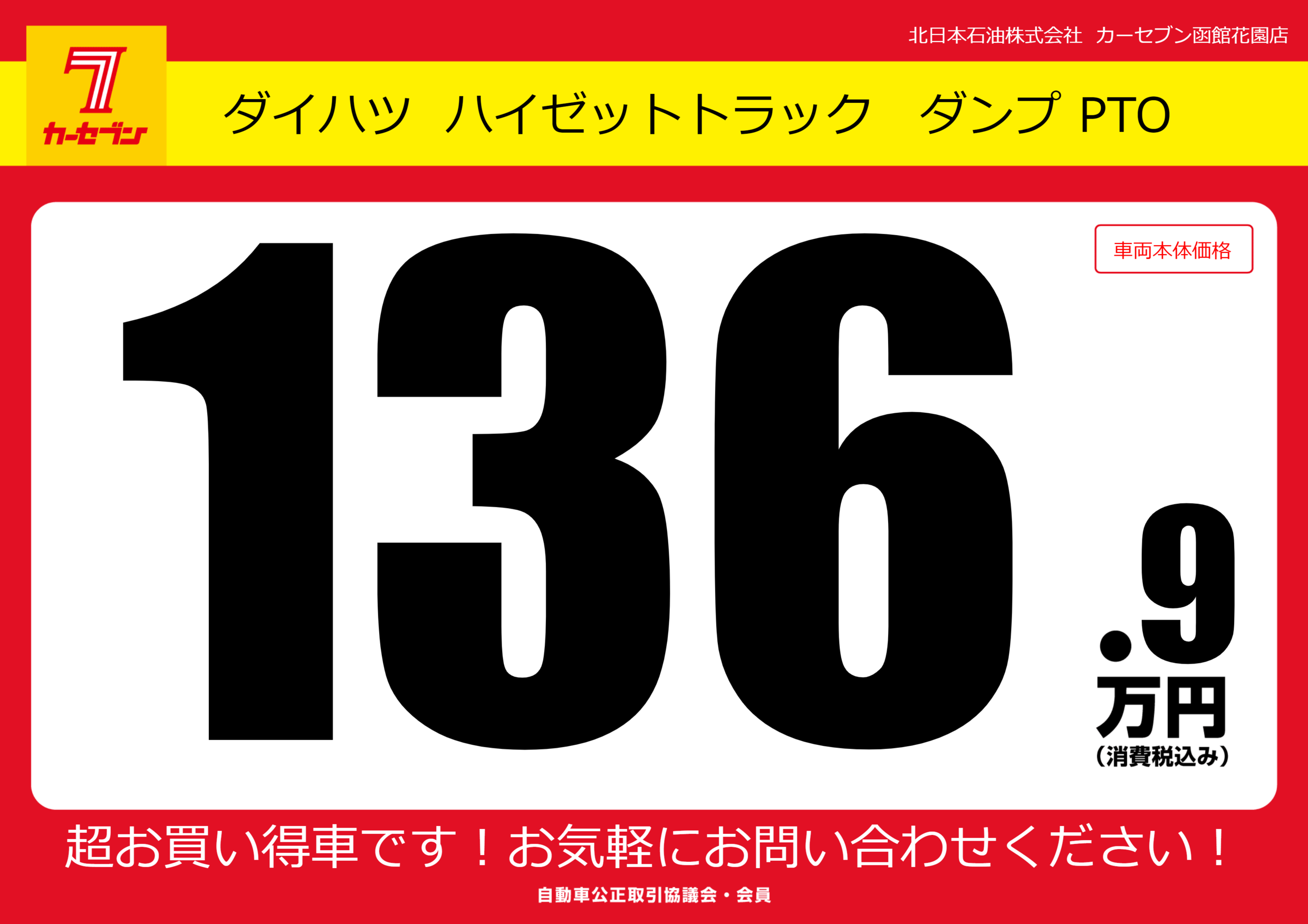 | 車名 | ダイハツ ハイゼットトラック ダンプ PTO | グレード ミッション 排気量 |