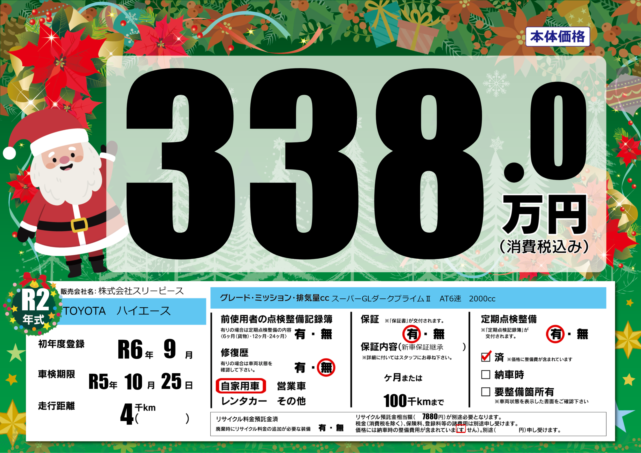 | 車名 | TOYOTA ハイエース | グレード ミッション 排気量 |