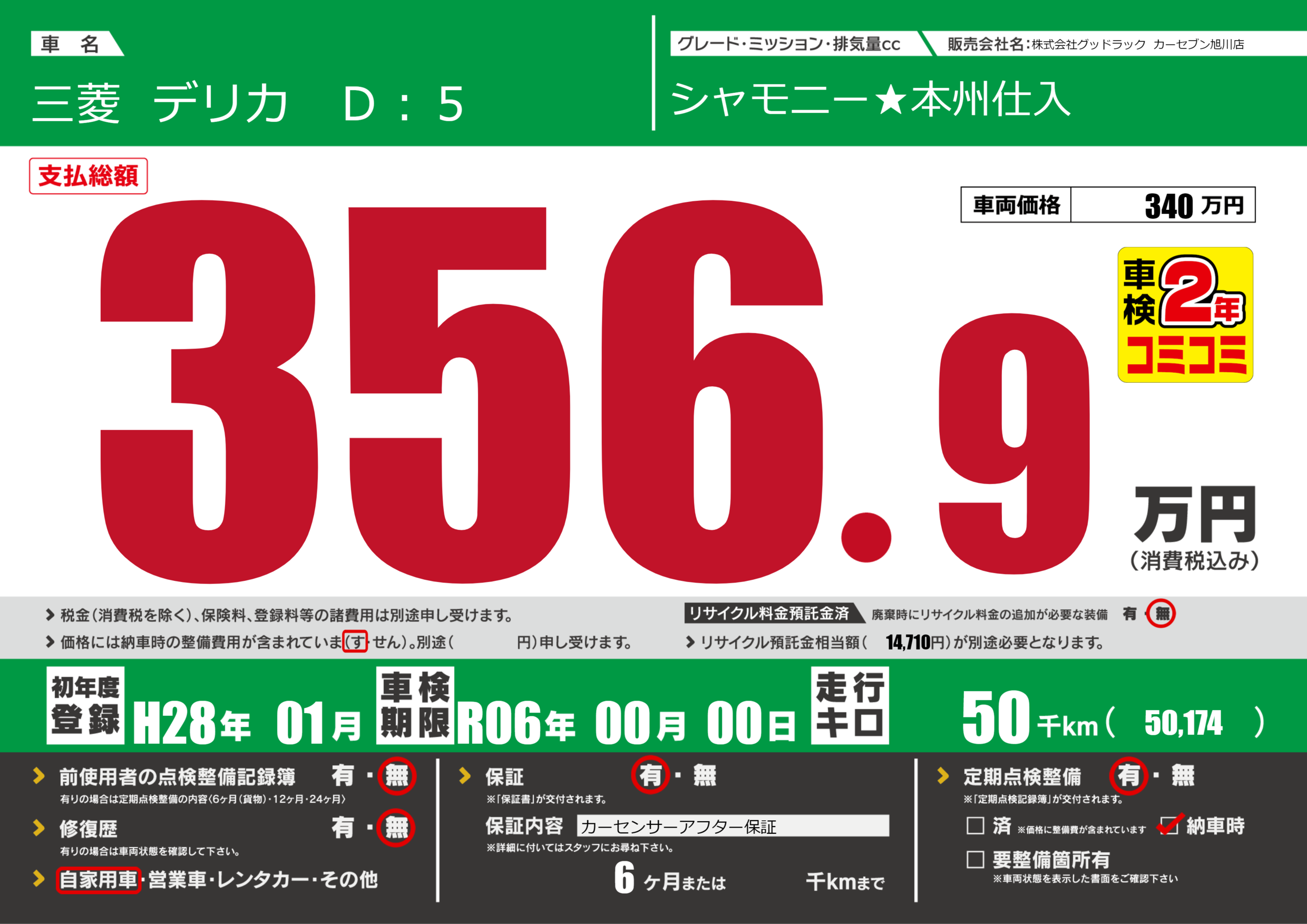 | 車検制限 | R06年 00月 00日 | ||