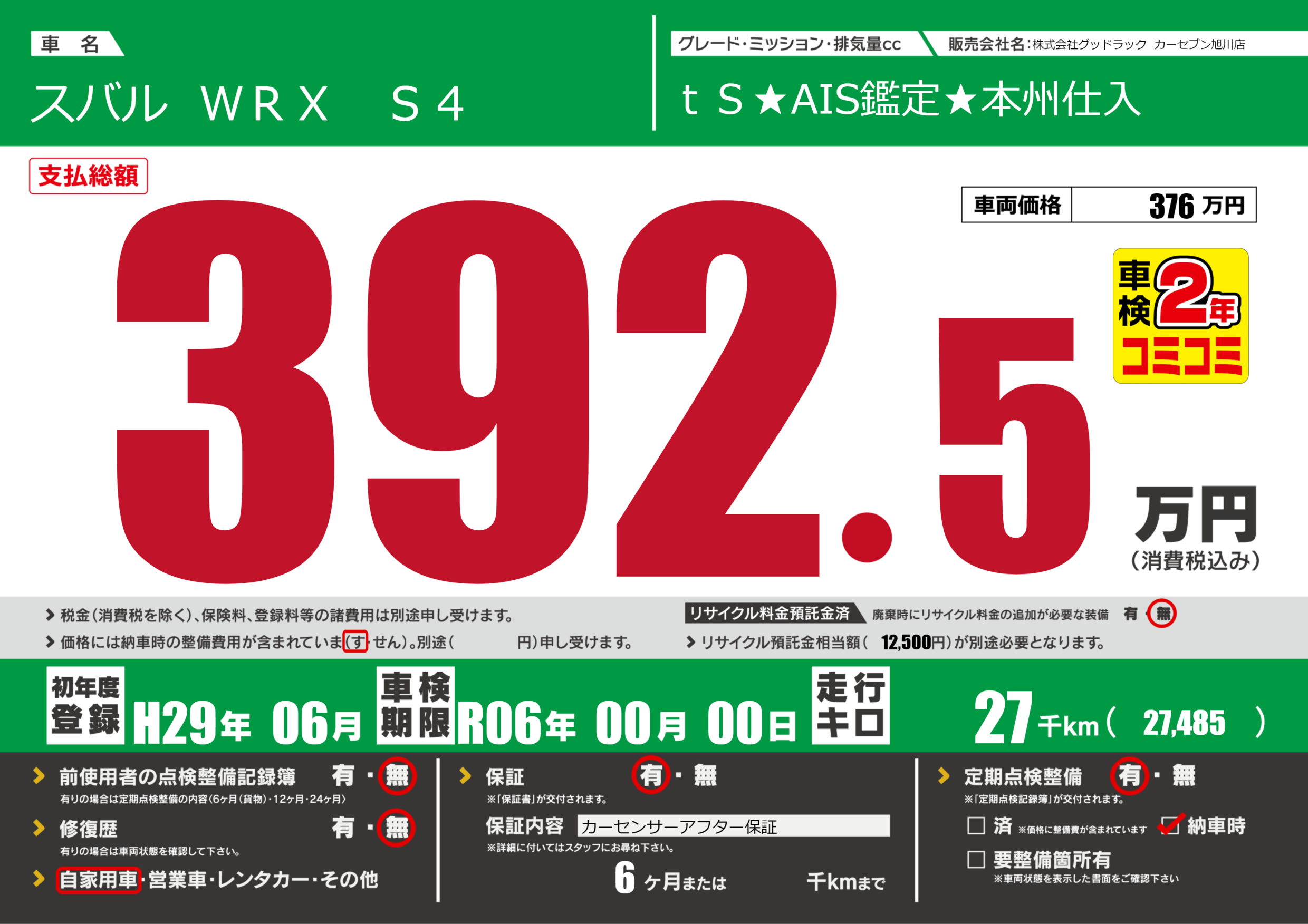 | 車検制限 | R06年 00月 00日 | ||