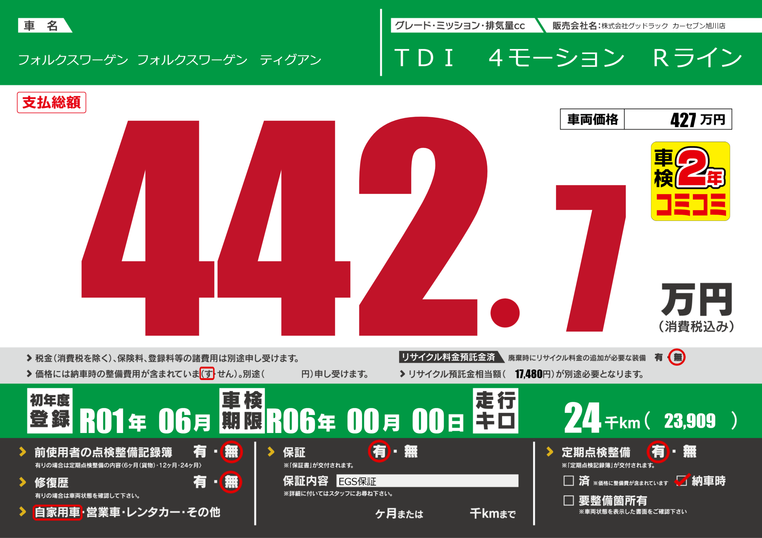 | 車検制限 | R06年 00月 00日 | ||